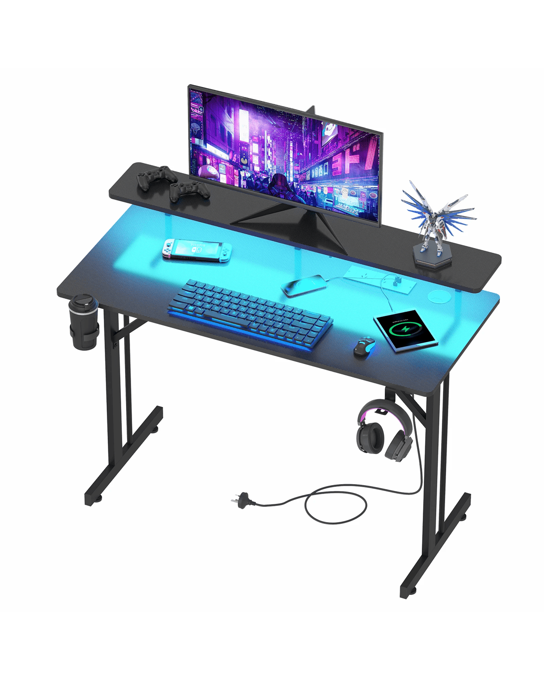 Advwin Gaming Desk With Led Lights & Power Outlets 100cm Computer Desk With Monitor Stand