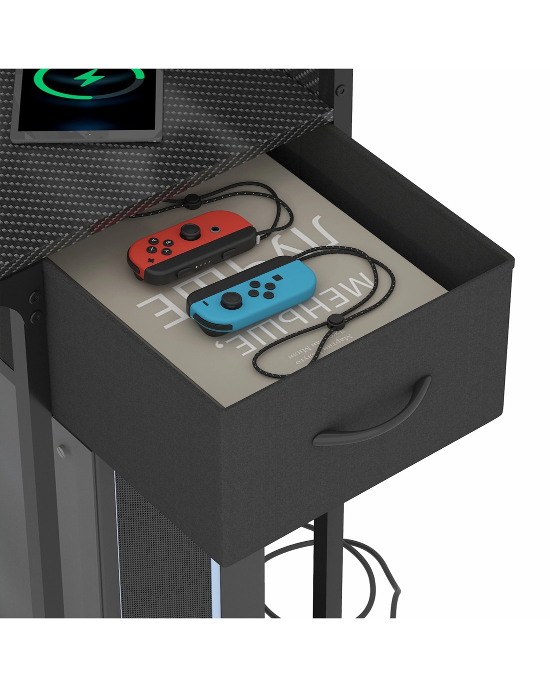 Sold by AdvwinAdvwin Gaming Desk with LED Lights & Power Outlets Reversible Storage Shelf 120cm Computer Desk with Fabric Drawer