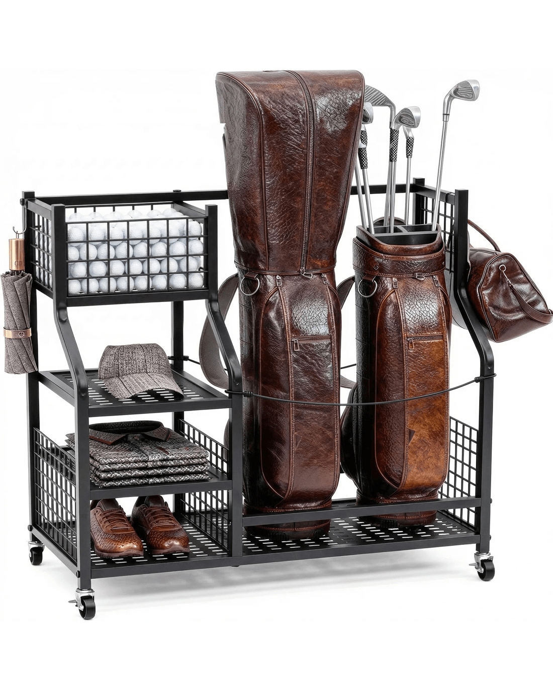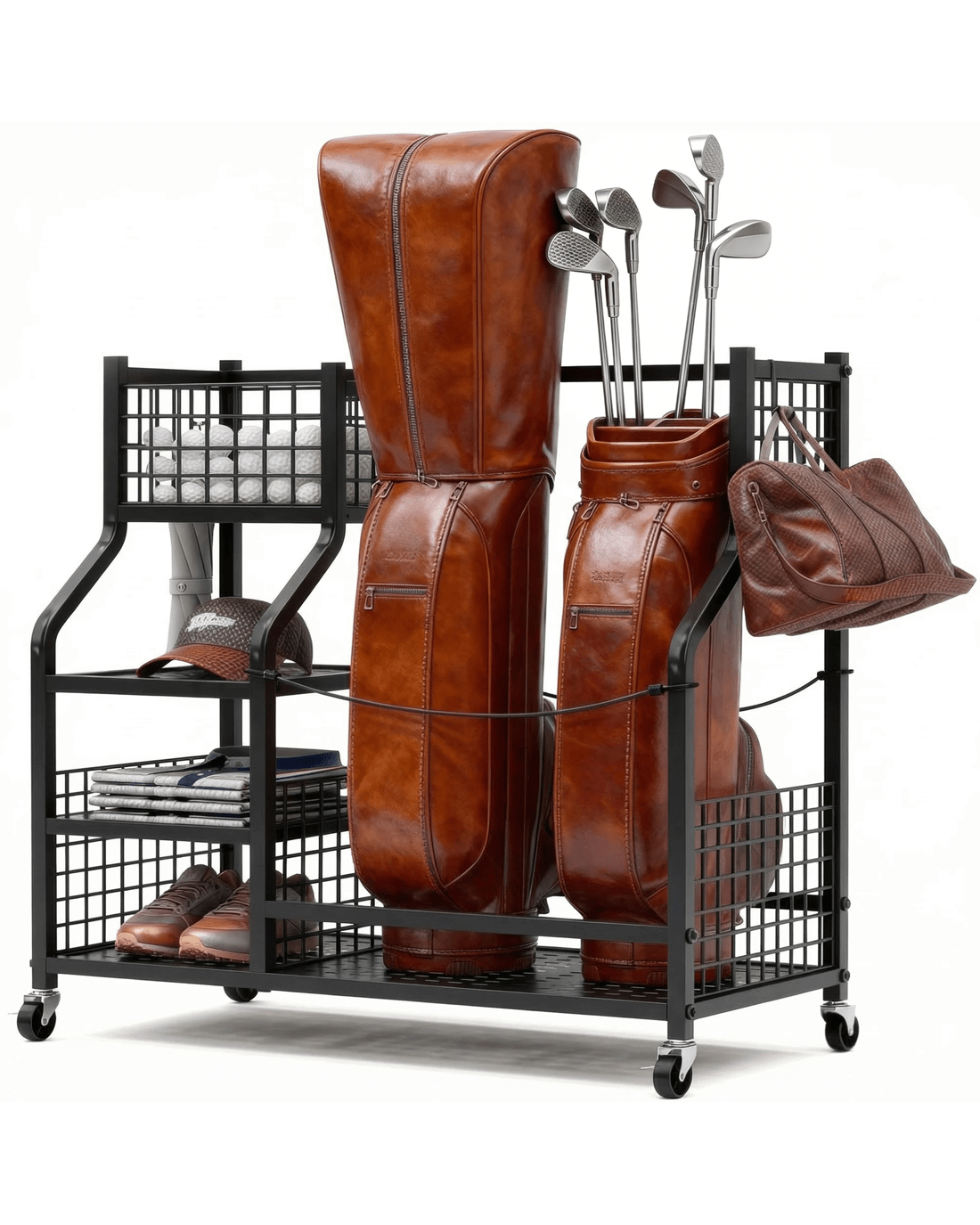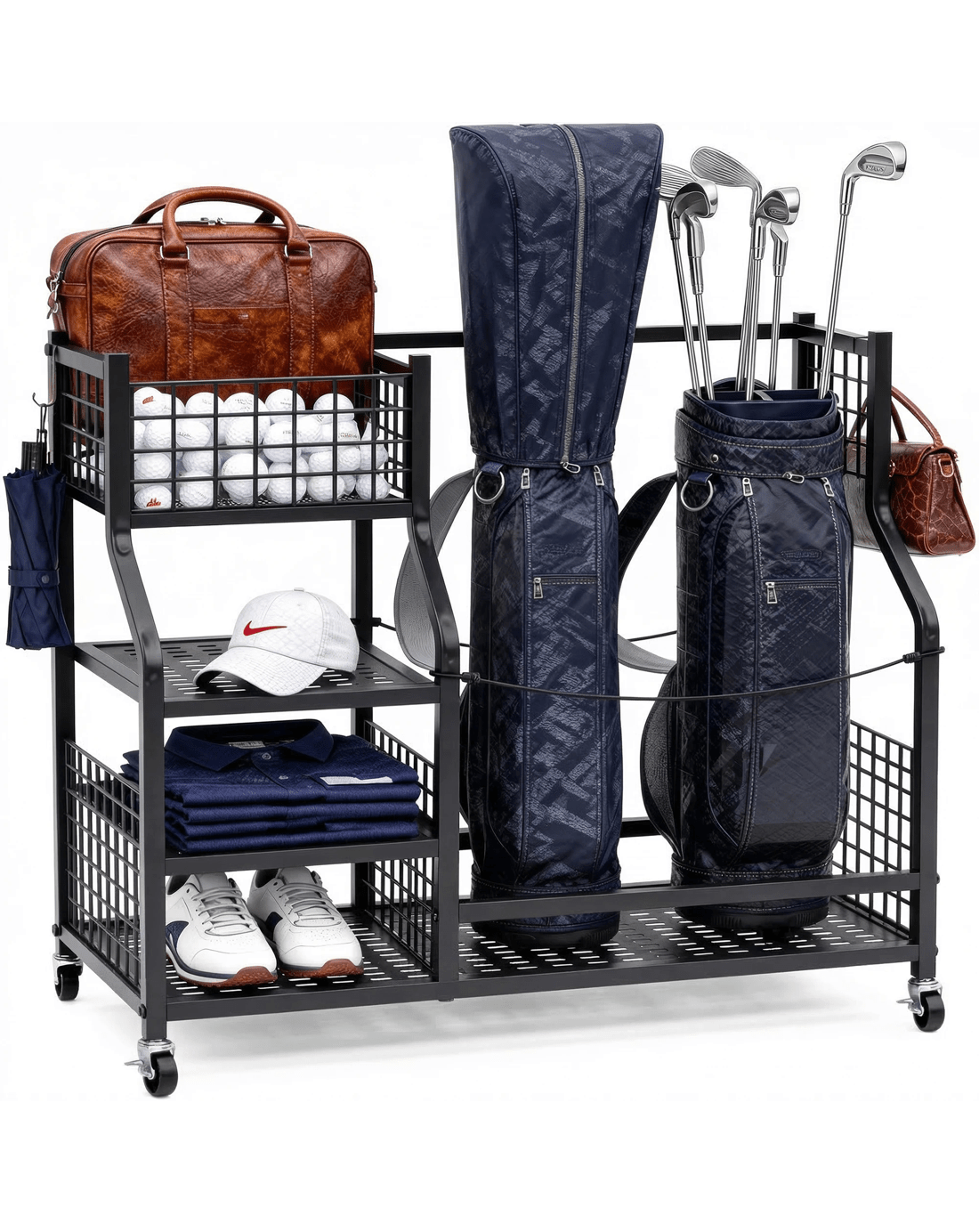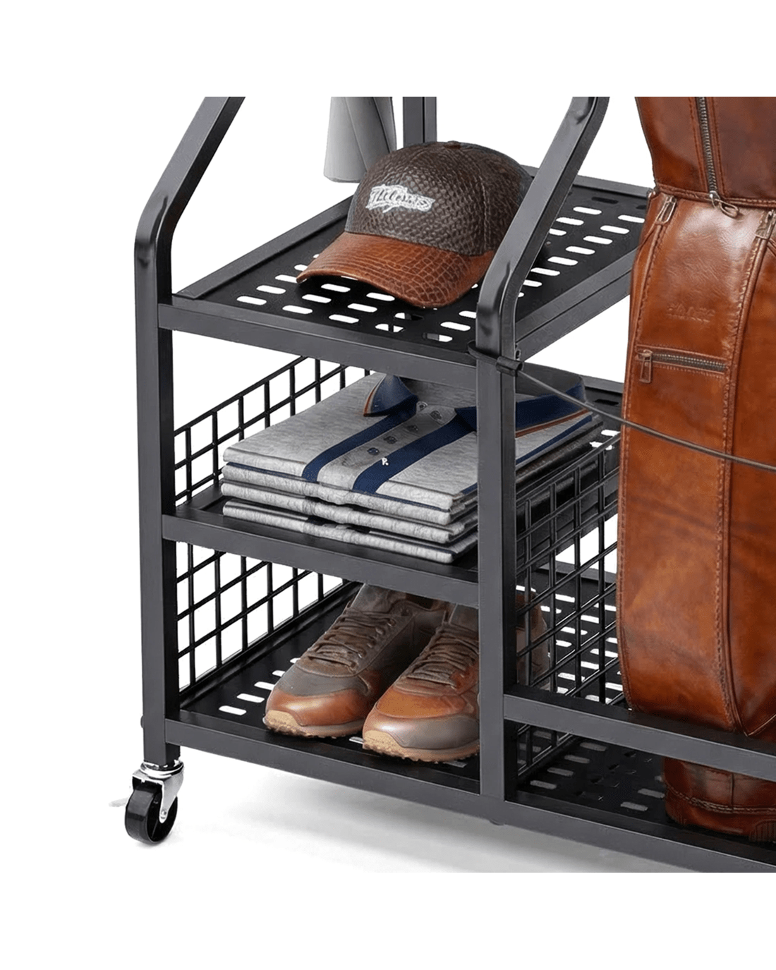 Advwin Golf Bag Storage Organiser with Lockable Wheels - Black