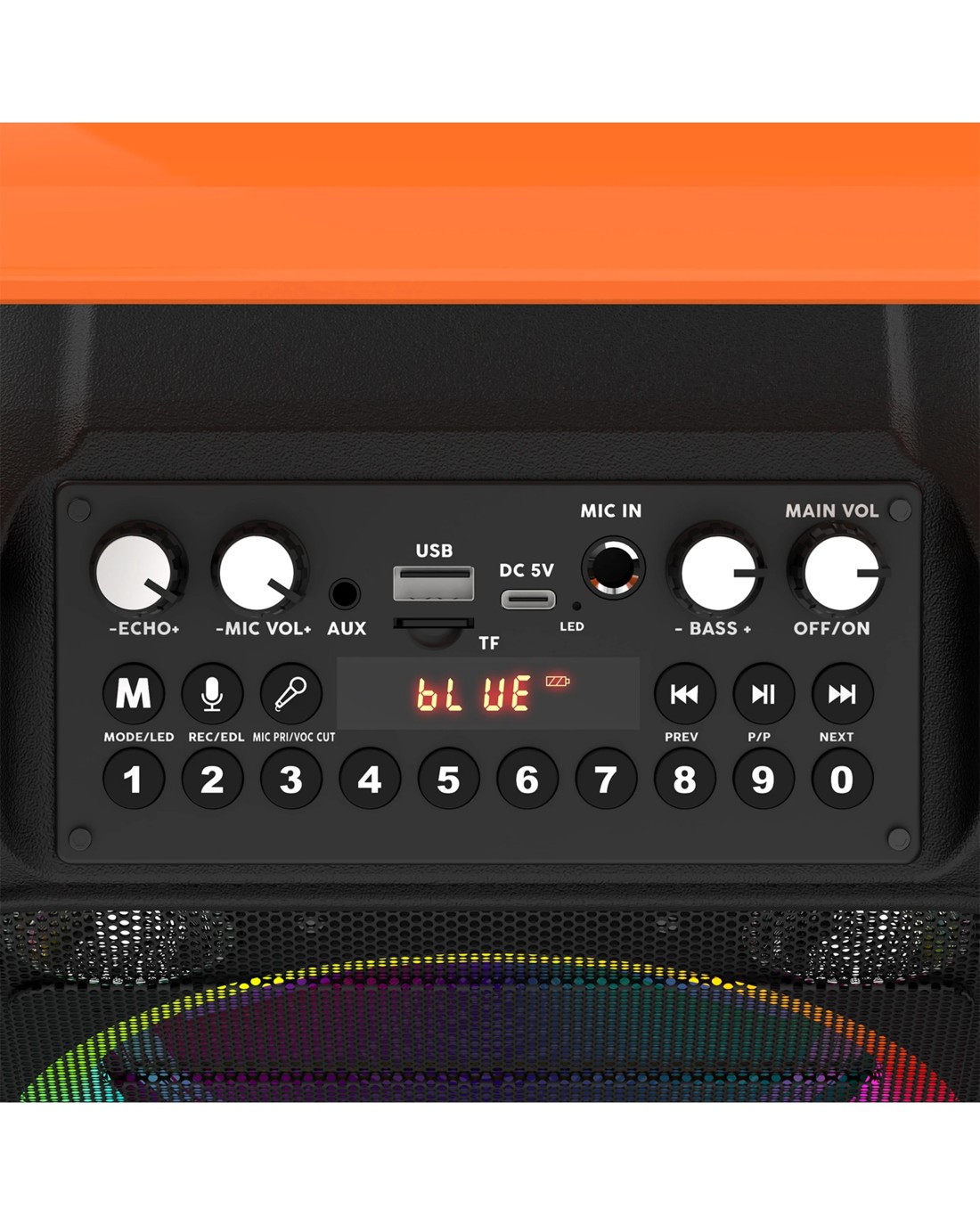 Control panel:Echo、Mic Vol、Vol、Treble、Mic Priority、Record、Karaoke