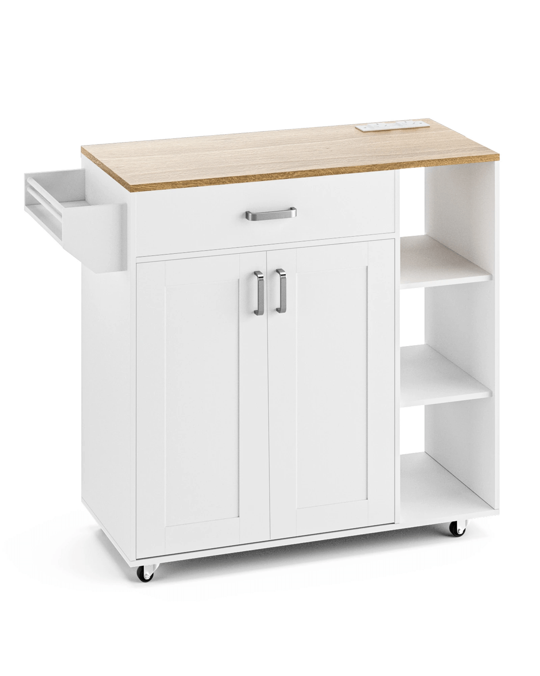 Built-in Charging Station & USB Ports: The kitchen island cart features a power cord that includes 2 AC outlets and 2 USB ports, fulfilling the power needs of your coffee machines, bread maker and other kitchen appliances to ensure an efficient cooking experience.