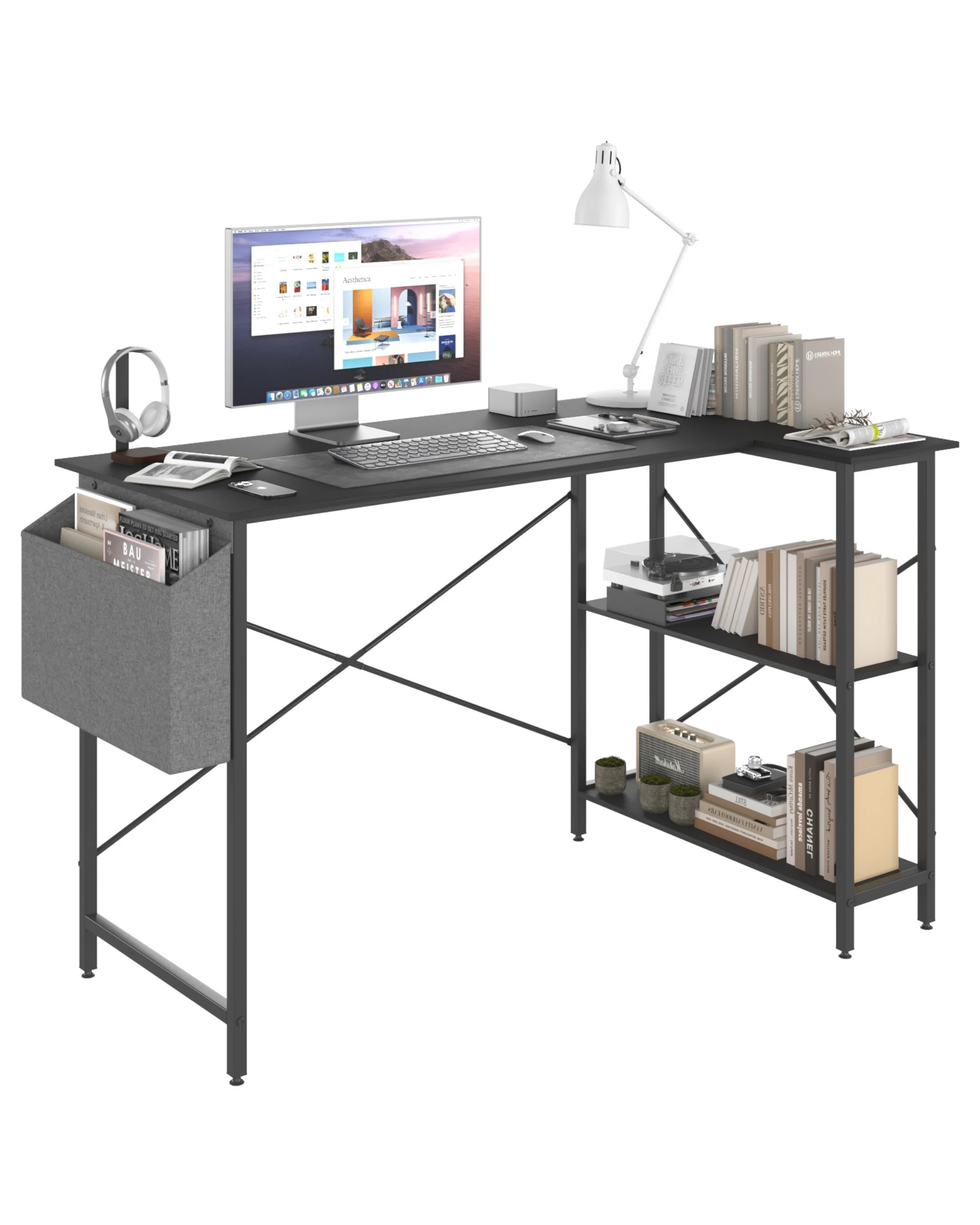 Advwin L Shaped Computer Desk With Convertible Storage Shelves Corner Desk Black