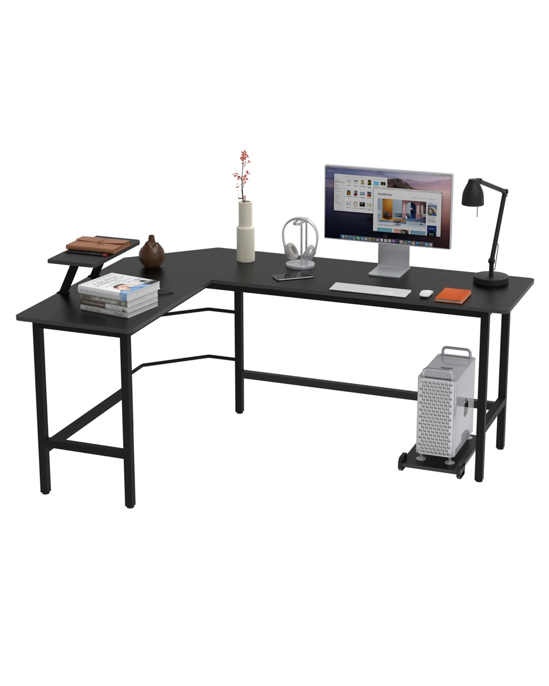 Make The Most Of Space: The office desk adopts an L-shaped configuration, with the same length on both sides, which can be easily switched according to your habits. It is easy to fit in the corner, you can place your monitor, laptop or other office supplies.Everything you need is at your fingertips.