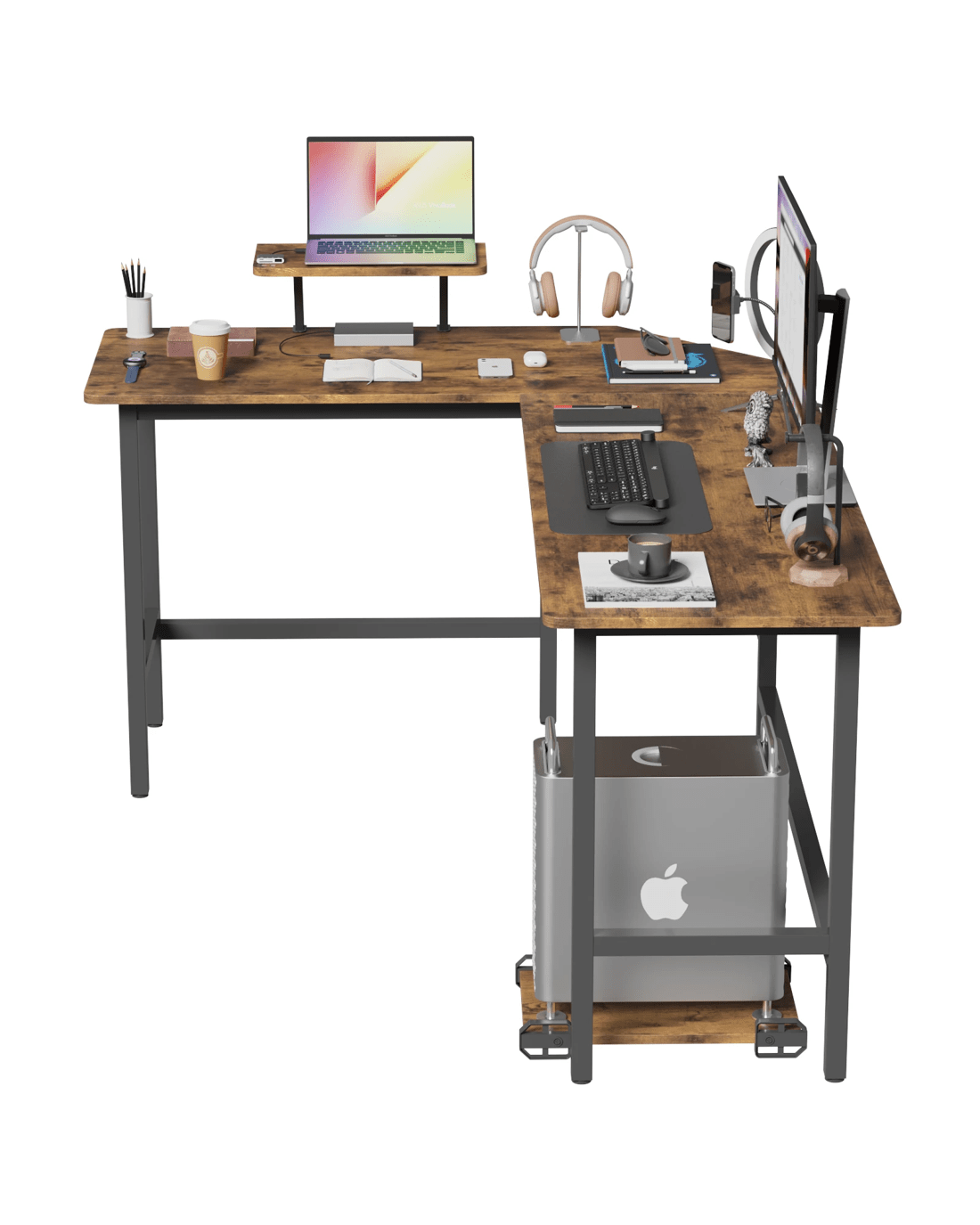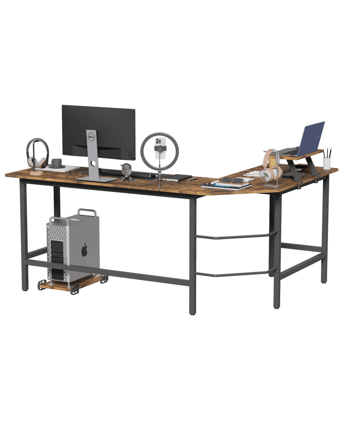 Advwin L-shaped Corner Desk With Laptop Stand Workstation Home Work Computer Desk Office Table - Brown