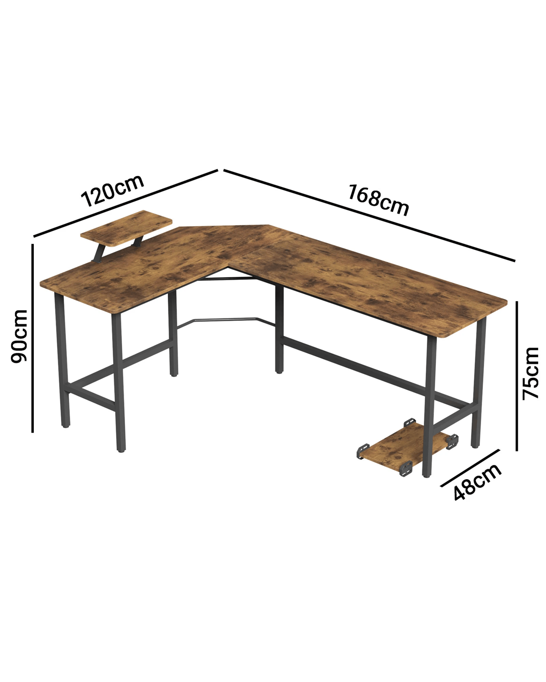 Large Desktop & Panoramic Presentation: 120/168L x 48W x 75/90H cm double desktop, providing you with sufficient working space and sufficient surface space for home office activities such as writing, gaming, computer work, etc.