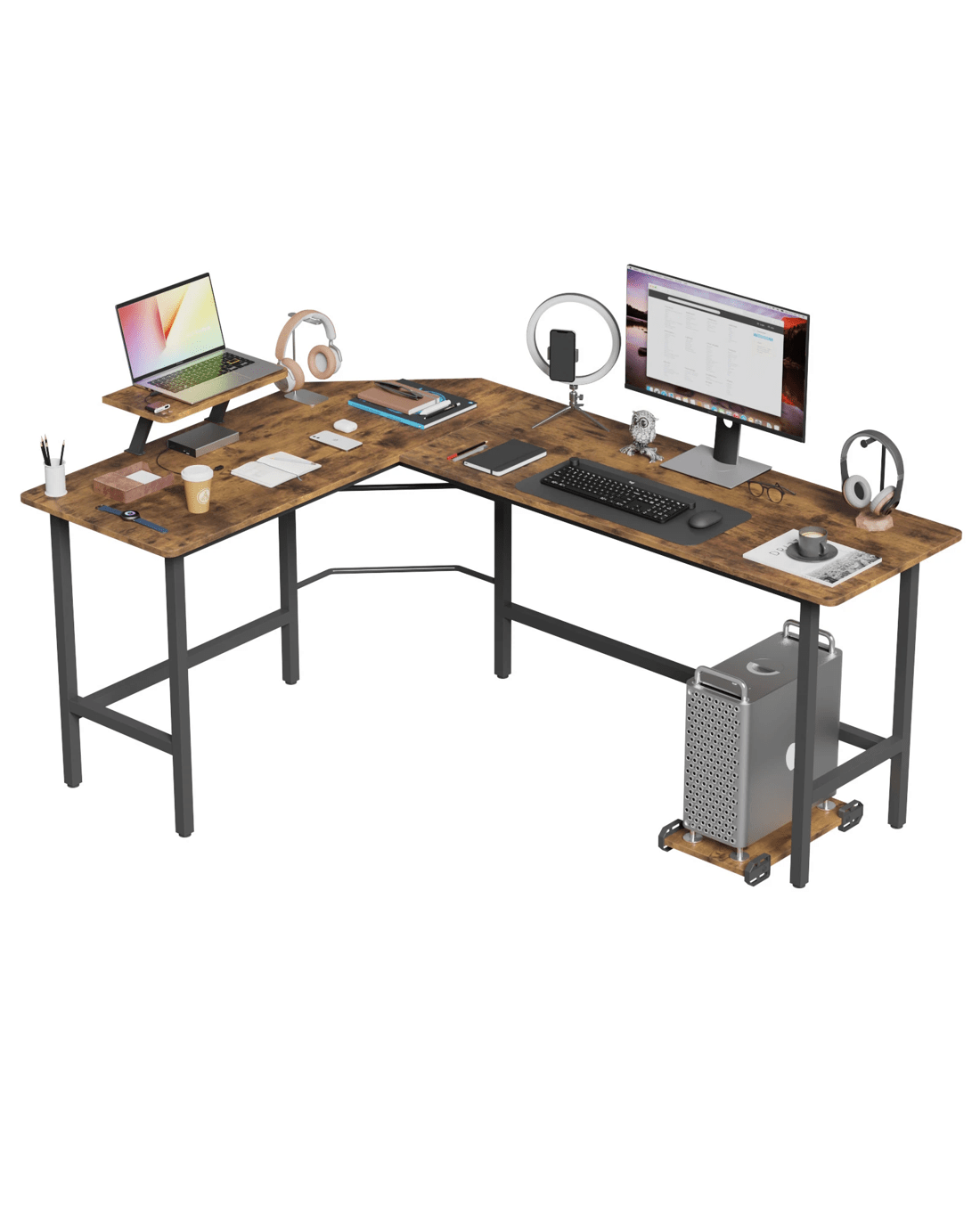 Make The Most Of Space: The office desk adopts an L-shaped configuration, with the same length on both sides, which can be easily switched according to your habits. It is easy to fit in the corner, you can place your monitor, laptop or other office supplies.Everything you need is at your fingertips.