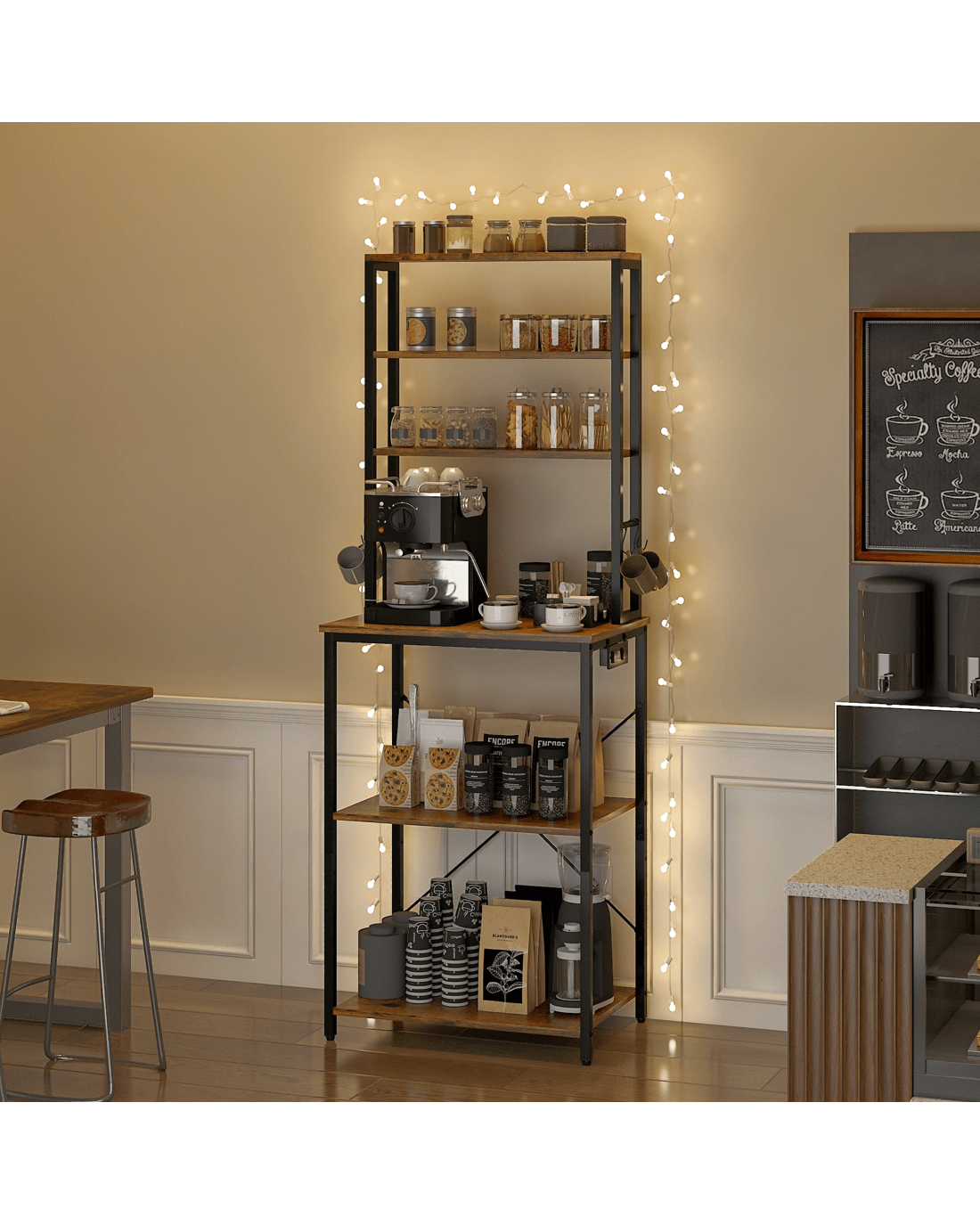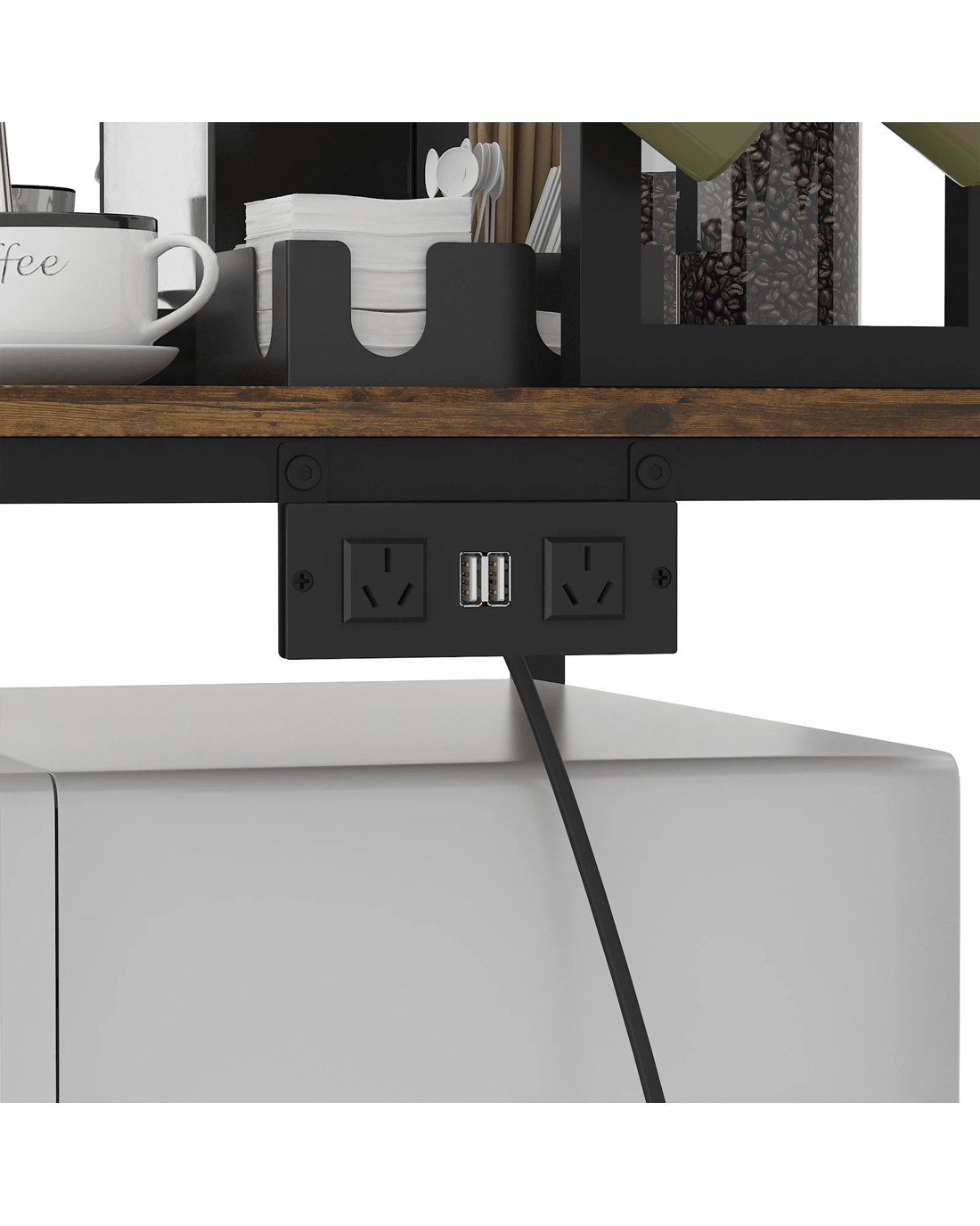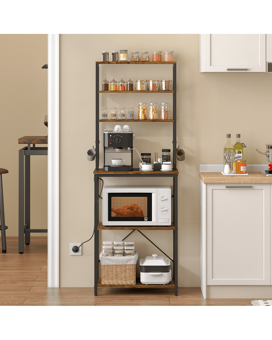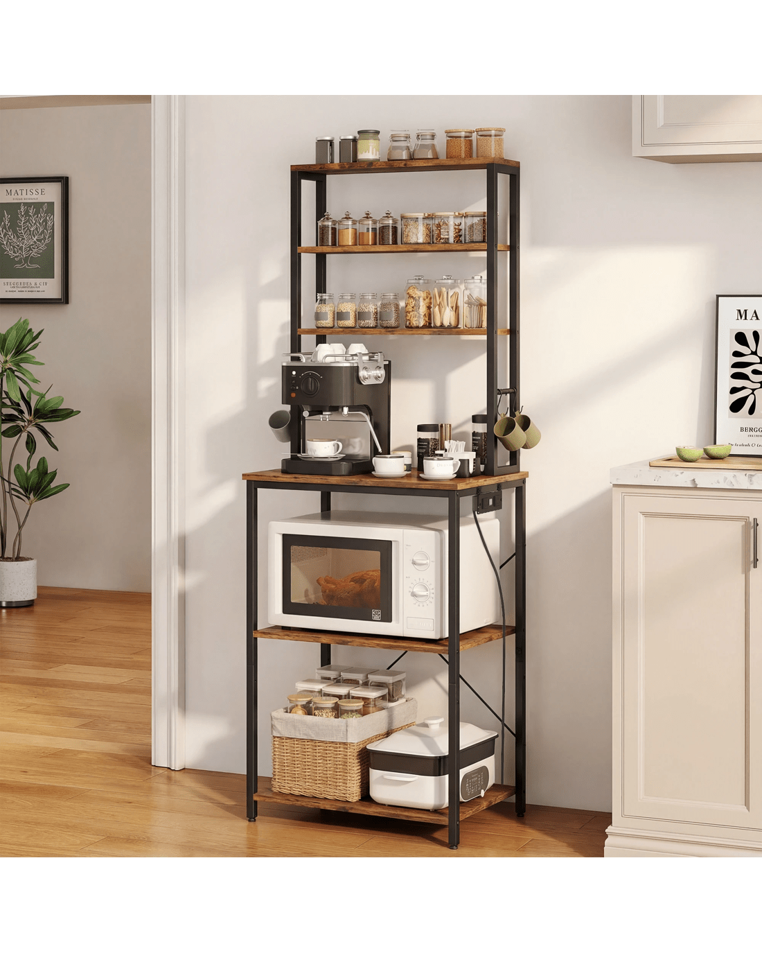 Advwin Large Bakers Rack with Power Outlets Microwave Stand Coffee Bar Kitchen Shelf with Drawer - Brown