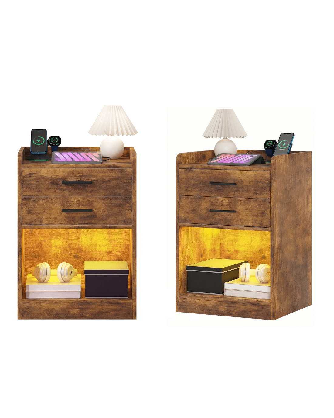 Sold by AdvwinAdvwin LED 2x Bedside Table with Charging Station 2 Drawers Nightstand - Brown