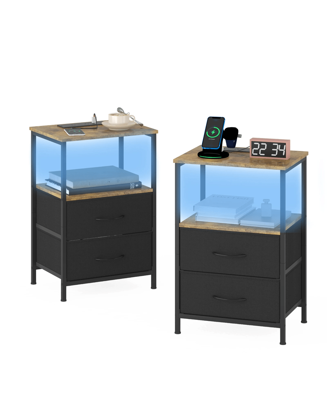 Sold by AdvwinAdvwin Led Bedside Table Set Of 2 Charging Station 2 Drawers Nightstand