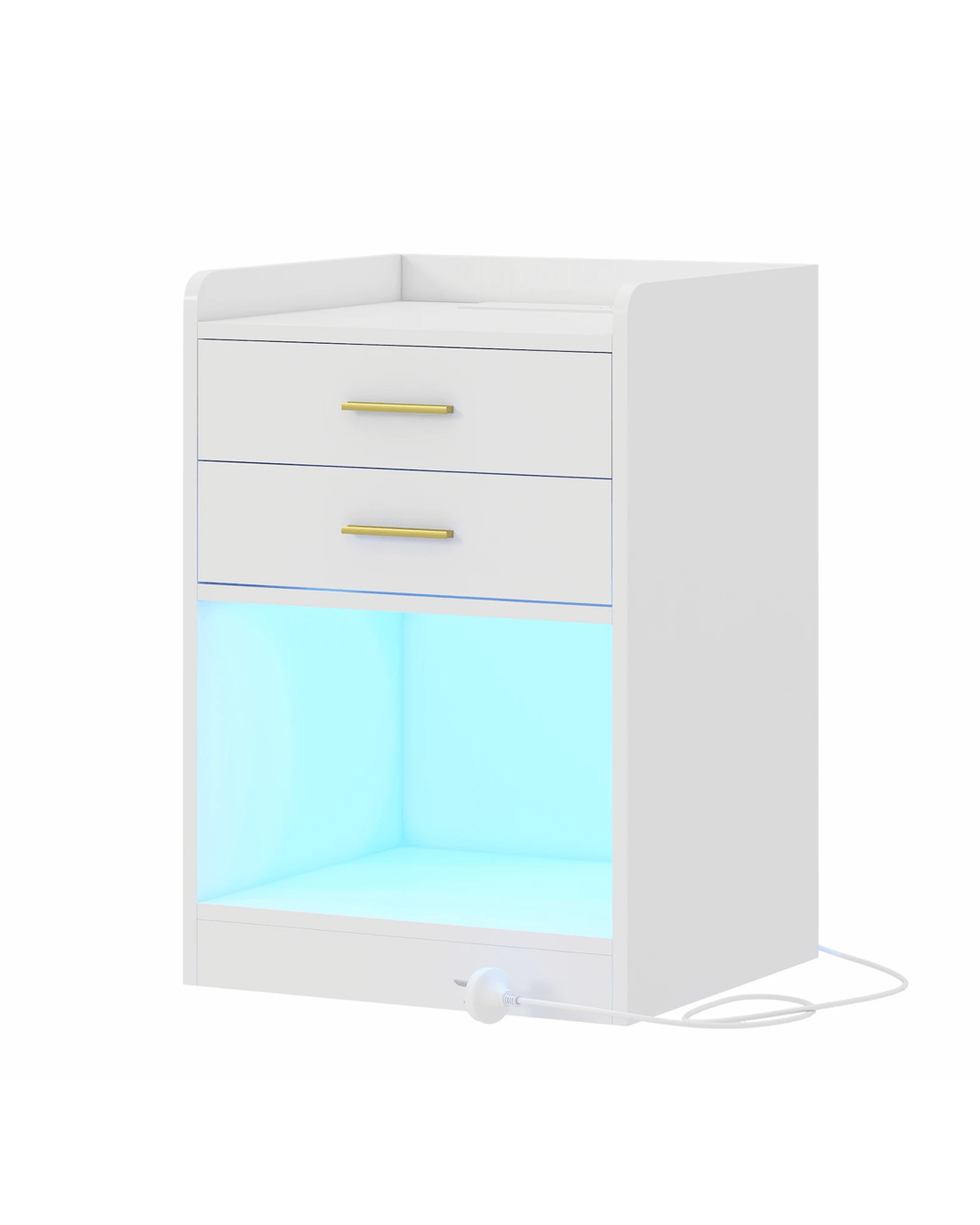 Sold by AdvwinAdvwin LED Bedside Table with Charging Station 2 Drawers Nightstand - White