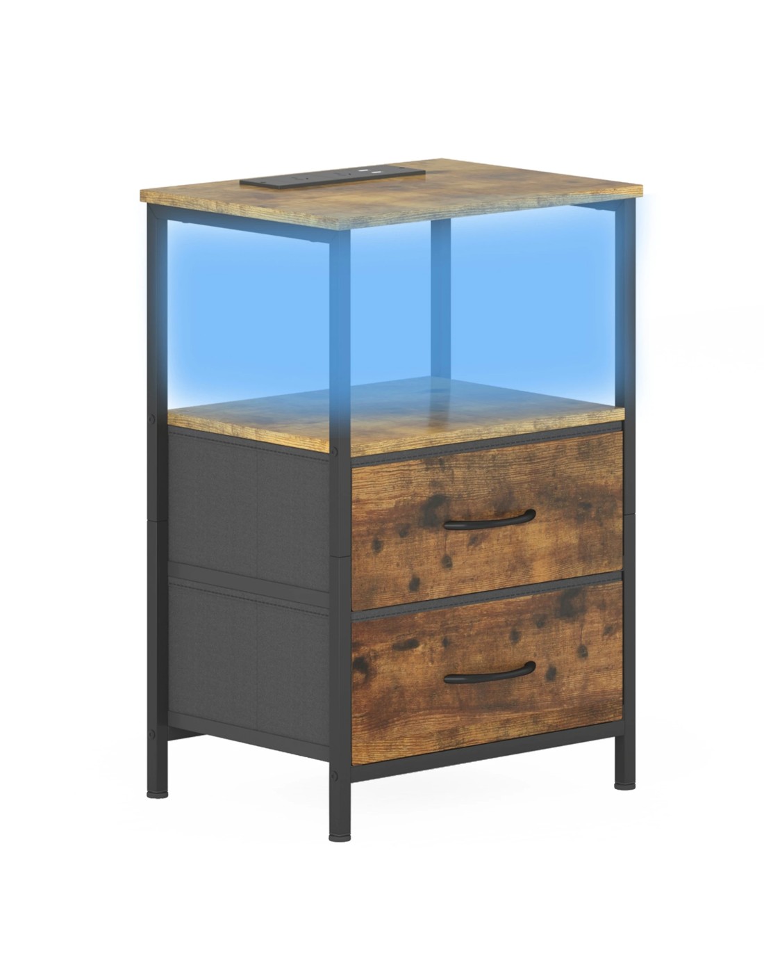 Sold by AdvwinAdvwin Led Bedside Table With Charging Station 2 Fabric Drawers Nightstand - Brown