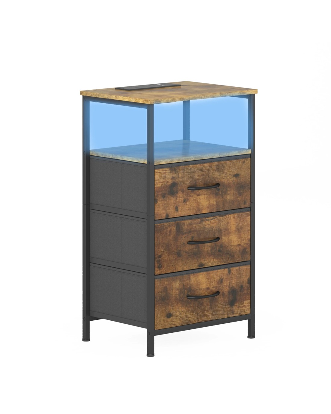 Sold by AdvwinAdvwin LED Bedside Table With Charging Station 3 Fabric Drawers Nightstand - Brown