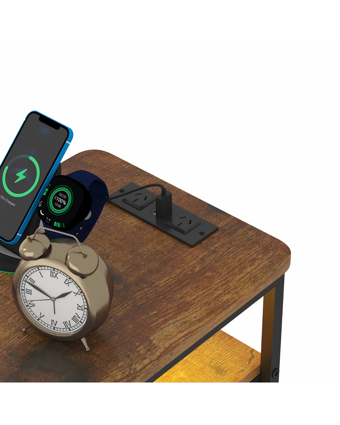 Advwin LED Bedside Tables Set of 2 with Drawer - Brown