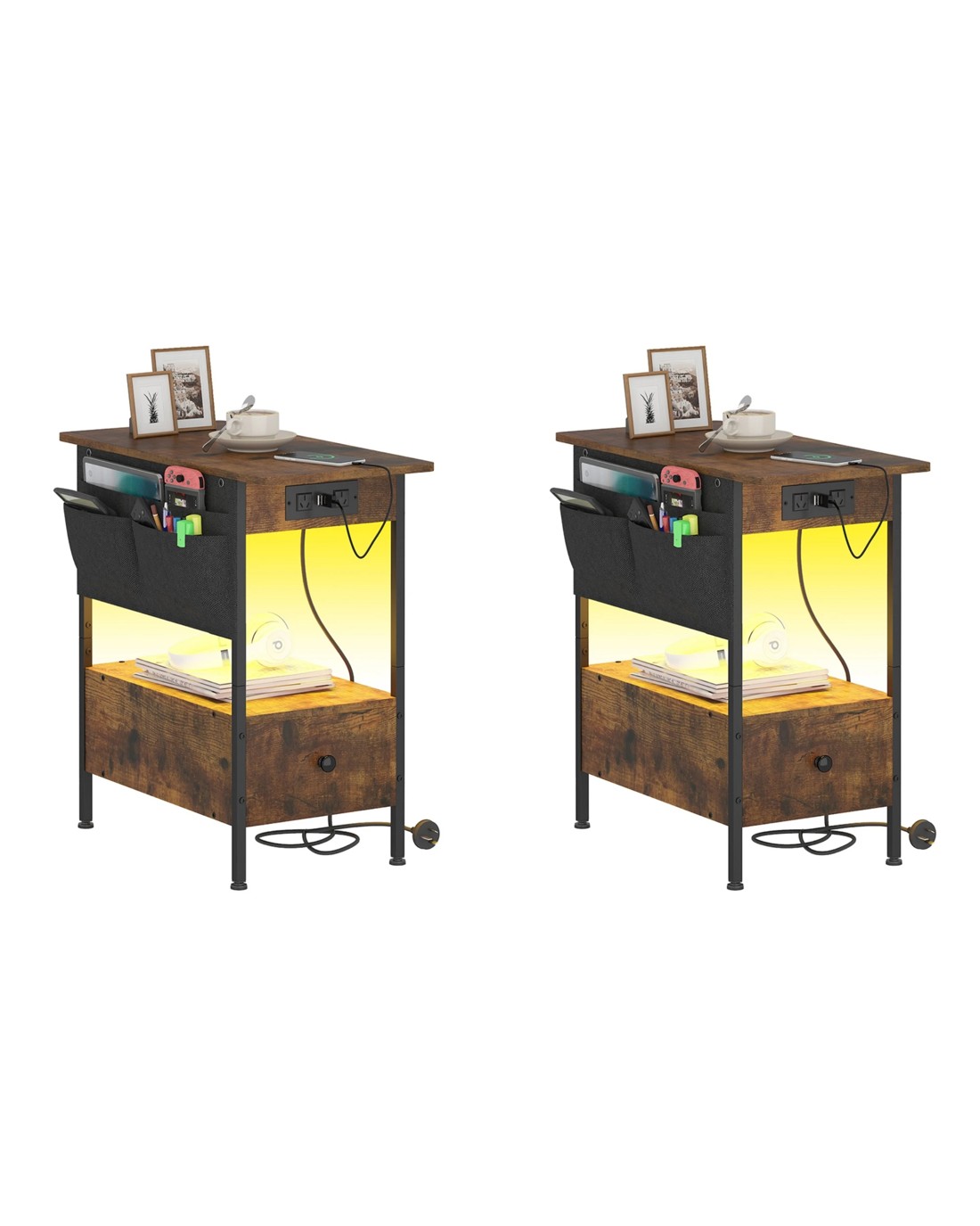 Advwin LED Bedside Tables Set of 2 with Storage Pocket - Brown