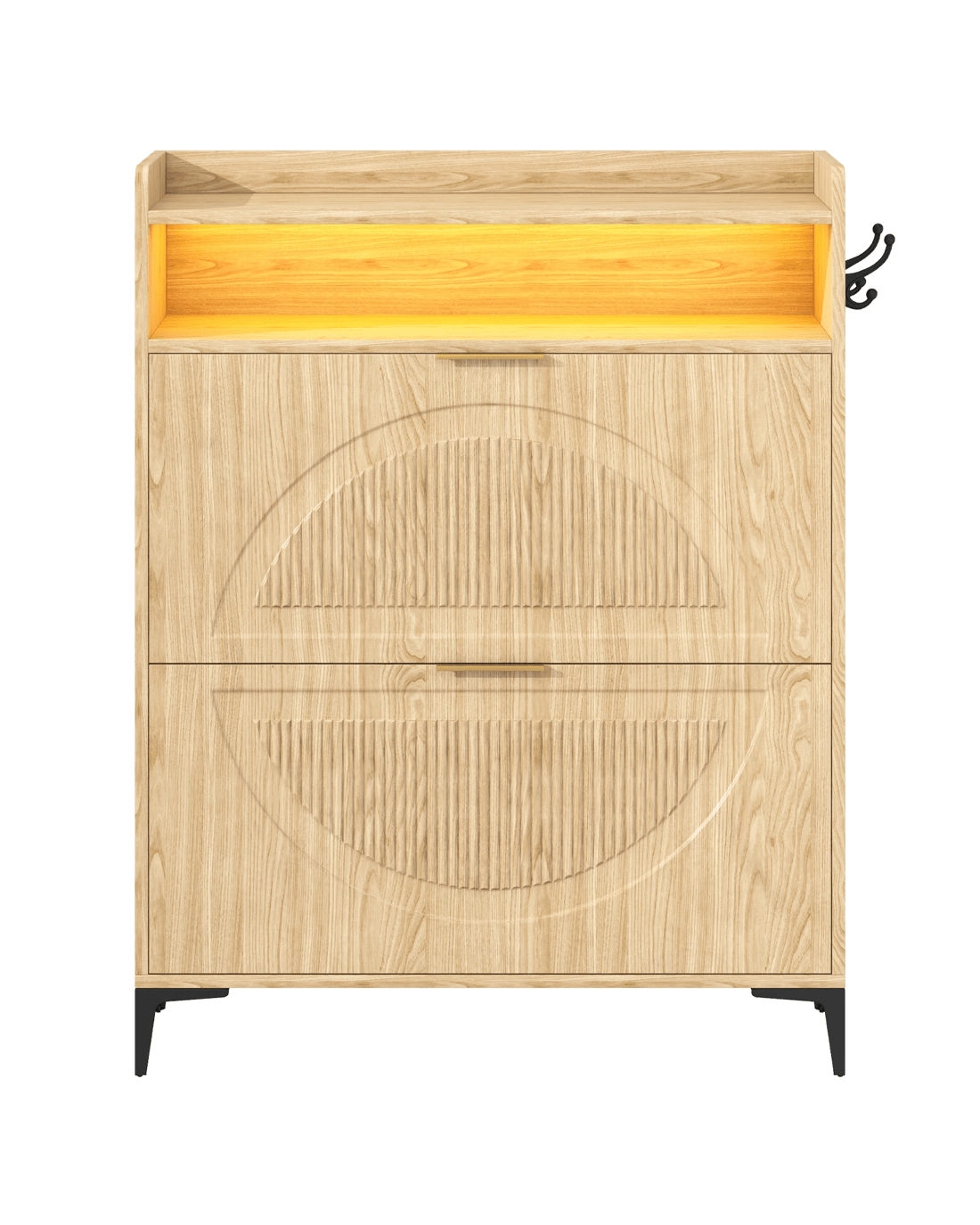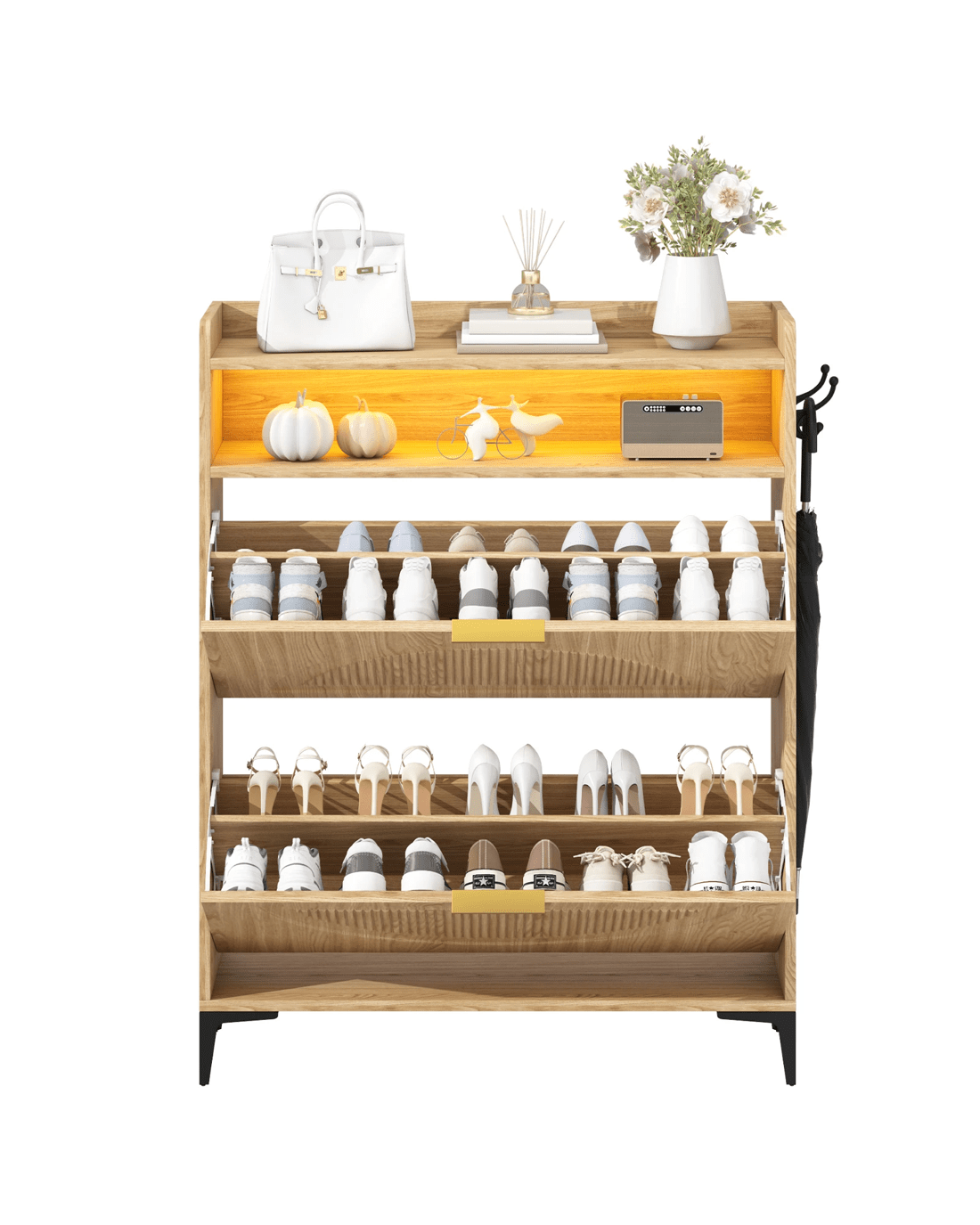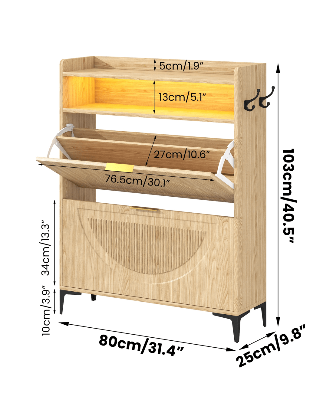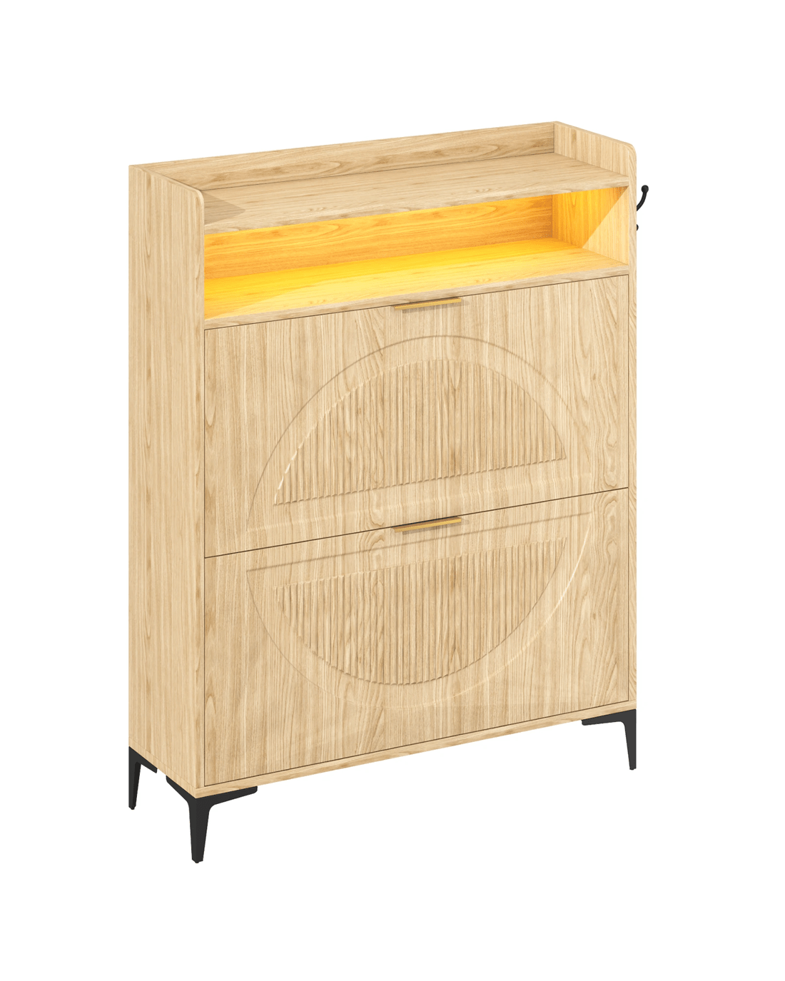 Sold by AdvwinAdvwin LED Shoe Storage Cabinet w/ Flip Drawers and Open Shelf Shoe Organizer Narrow Shoe Rack Cabinet with Hook
