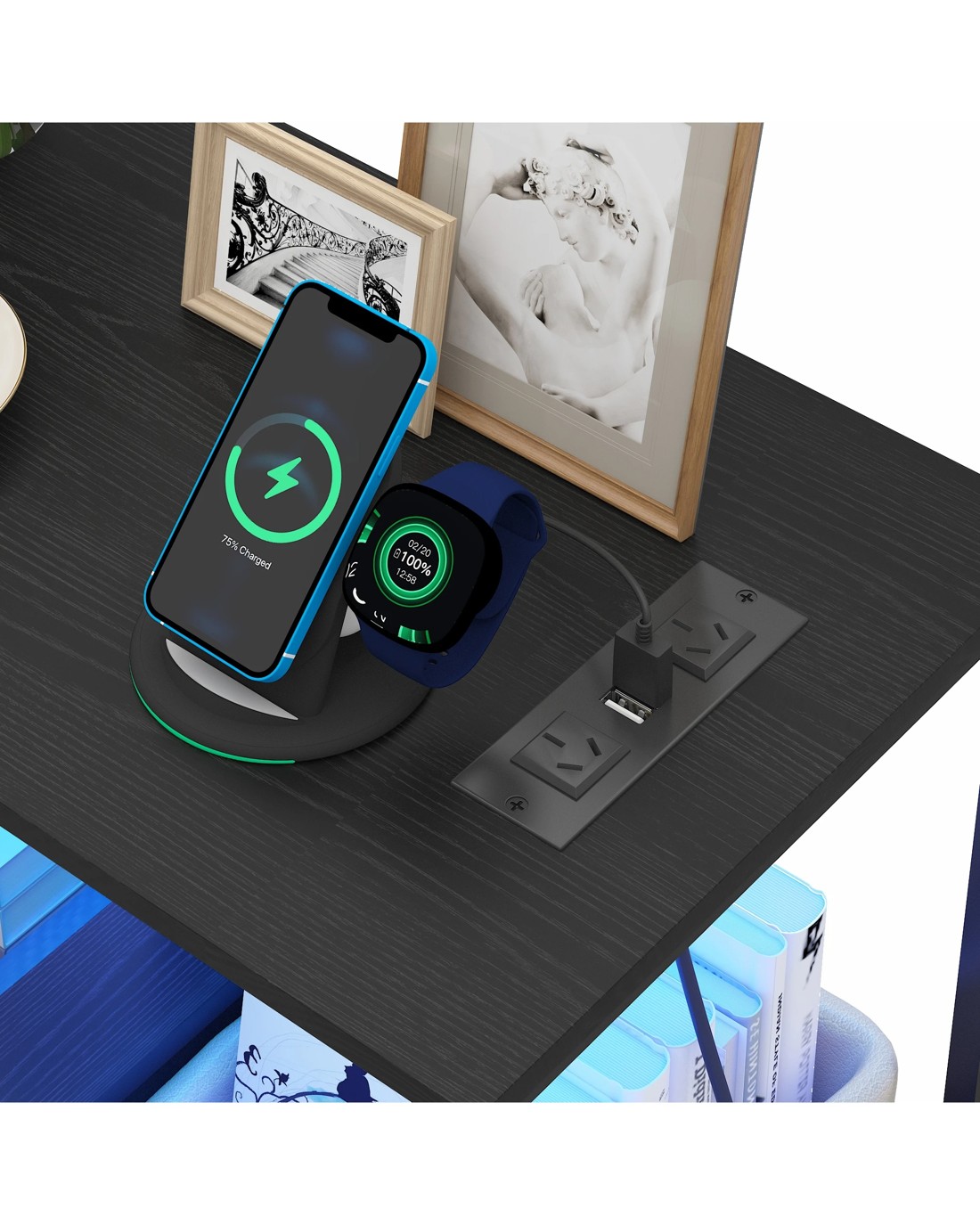 Sold by AdvwinAdvwin LED Side Table Sofa End Table w/ Power Outlets & Wheels Slim Bedside Table w/Reversible Drawer - Black