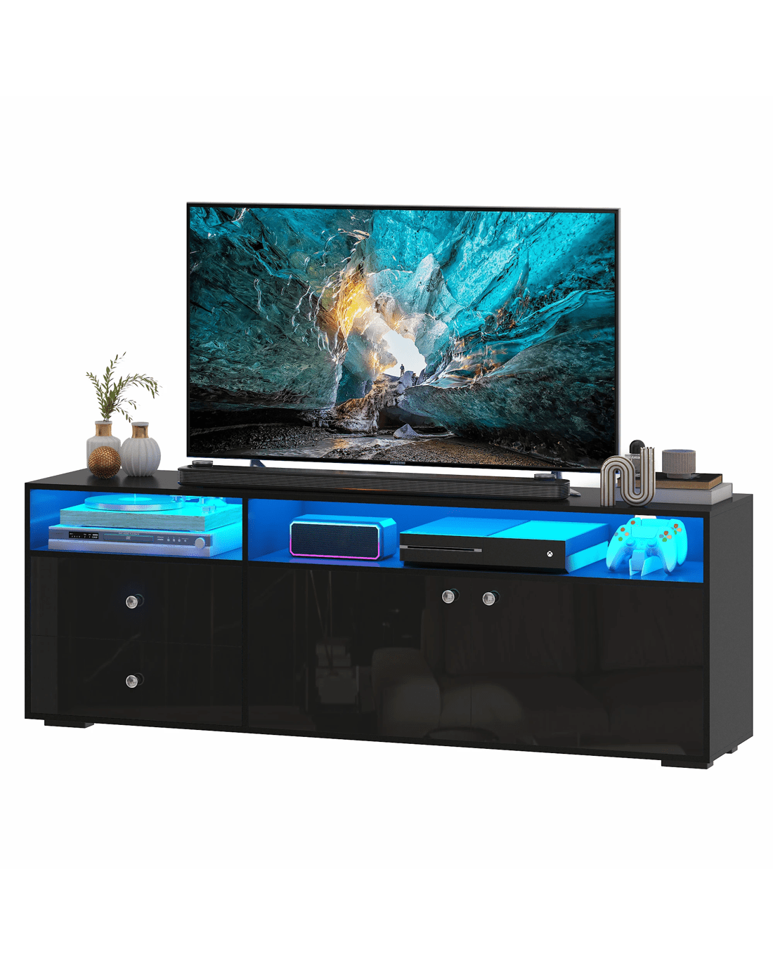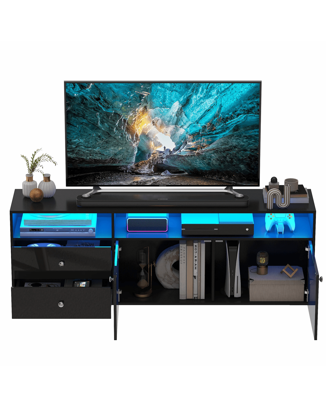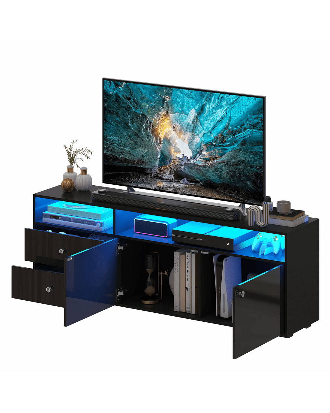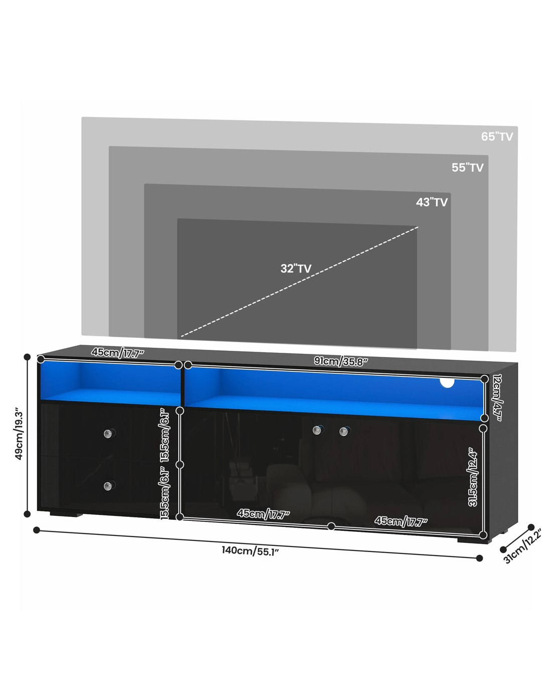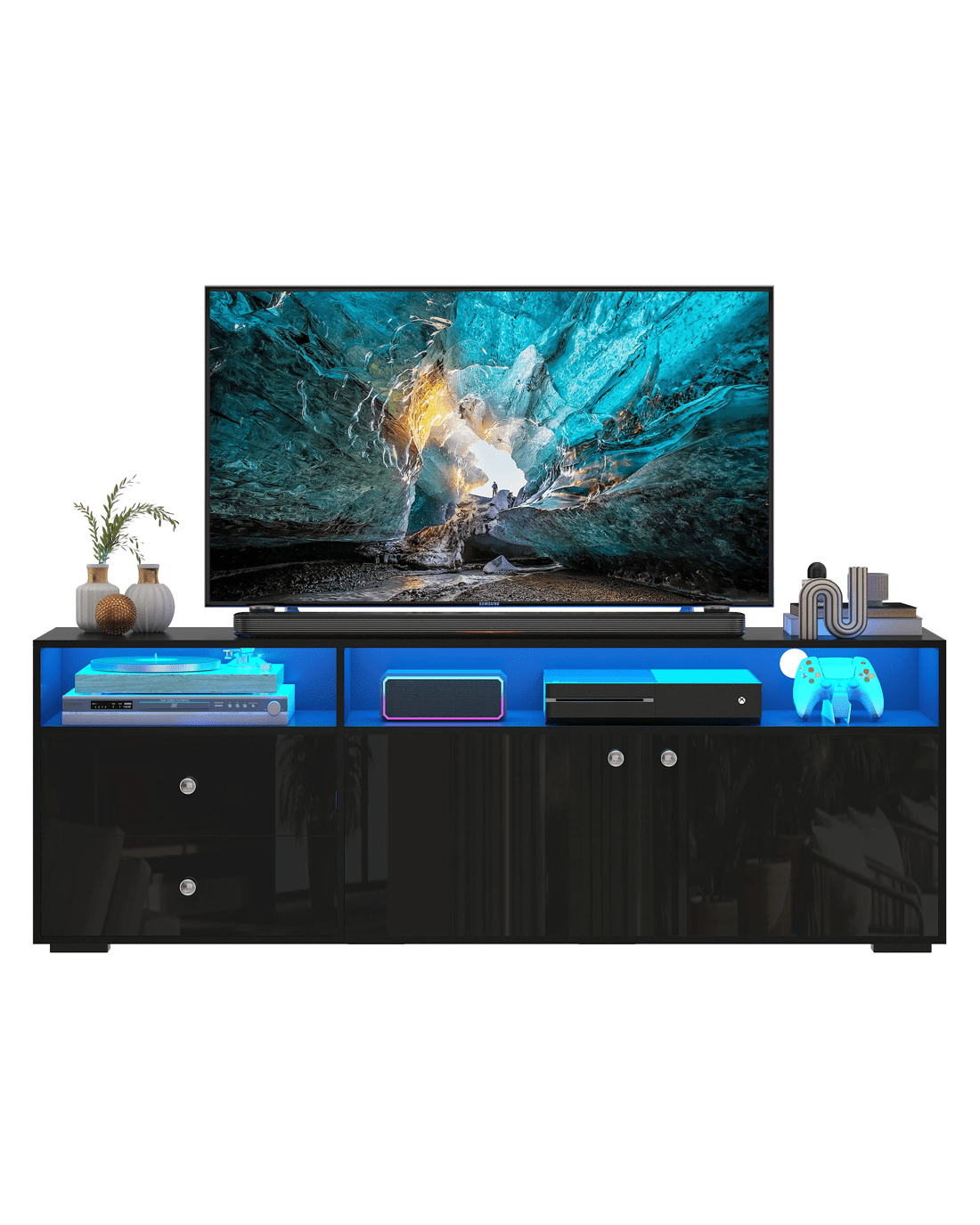 Sold by AdvwinAdvwin LED TV Cabinet 140cm Entertainment Center Media Console Table with High Gloss Drawer & Cabinets - Black