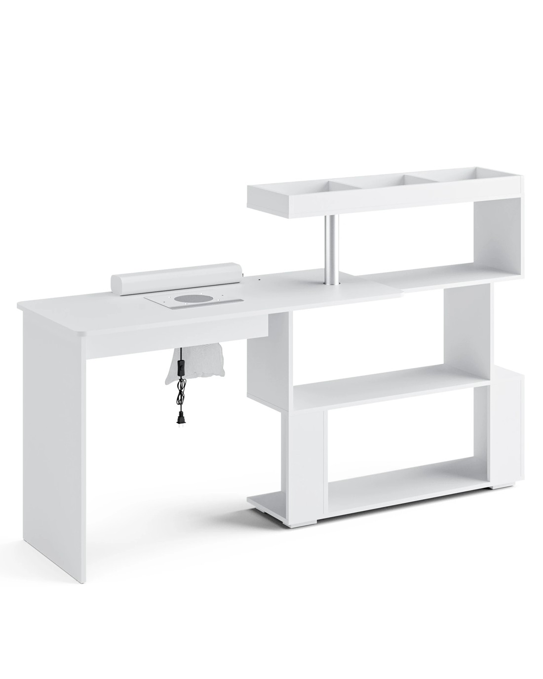 Sold by AdvwinAdvwin Manicure Table Dressing Nail Tech Desk with Dust Collector Rotating Reversible L-Shaped Salon Workstation - White