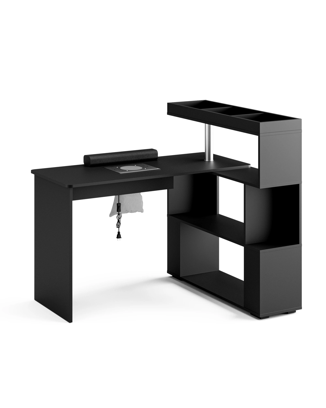 Sold by AdvwinAdvwin Manicure Table Dressing Nail Tech Desk with Dust Collector Rotating Reversible L-Shaped Salon Workstation - Black