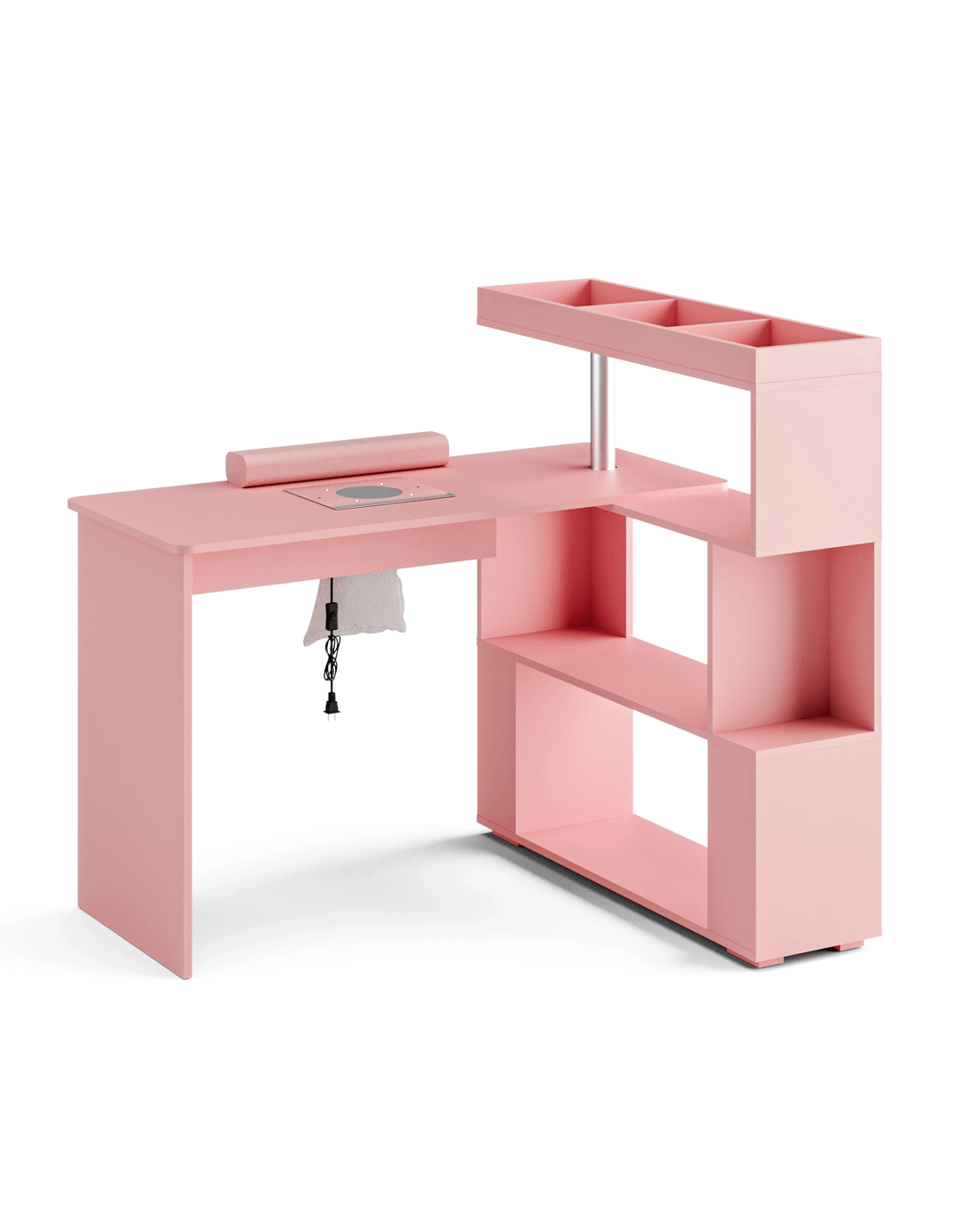 Sold by AdvwinAdvwin Manicure Table Dressing Nail Tech Desk with Dust Collector Rotating Reversible L-Shaped Salon Workstation - Pink