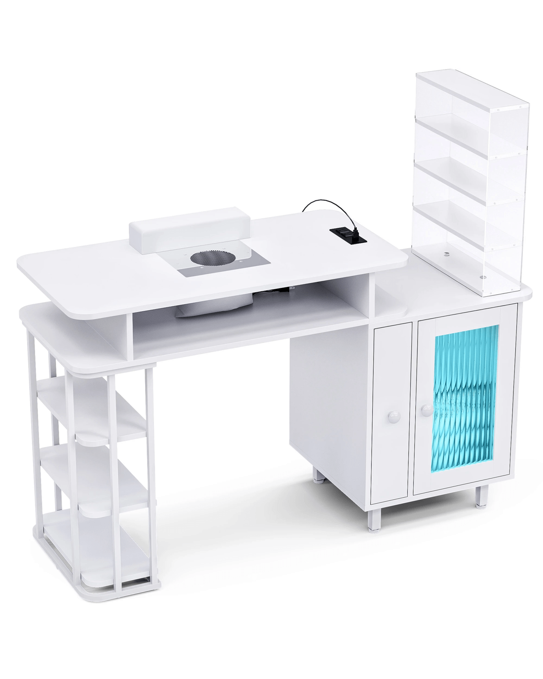 Efficient Dust Collection System:Equipped with a dust collector and four dust bags, this nail desk for nail techs helps keep your work area tidy by collecting nail dust, ensuring a clean and efficient workspace.