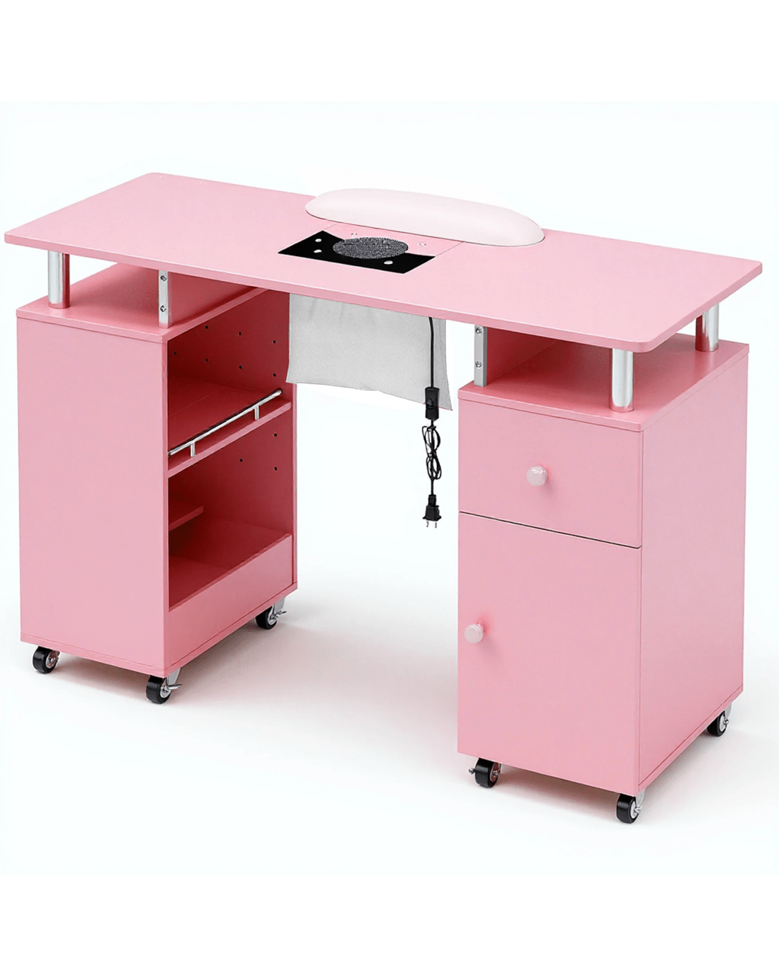Sold by AdvwinAdvwin Manicure Table Vanity Desk for Nail Tech with Dust Collector Wrist Rest Lockable Wheels - Pink