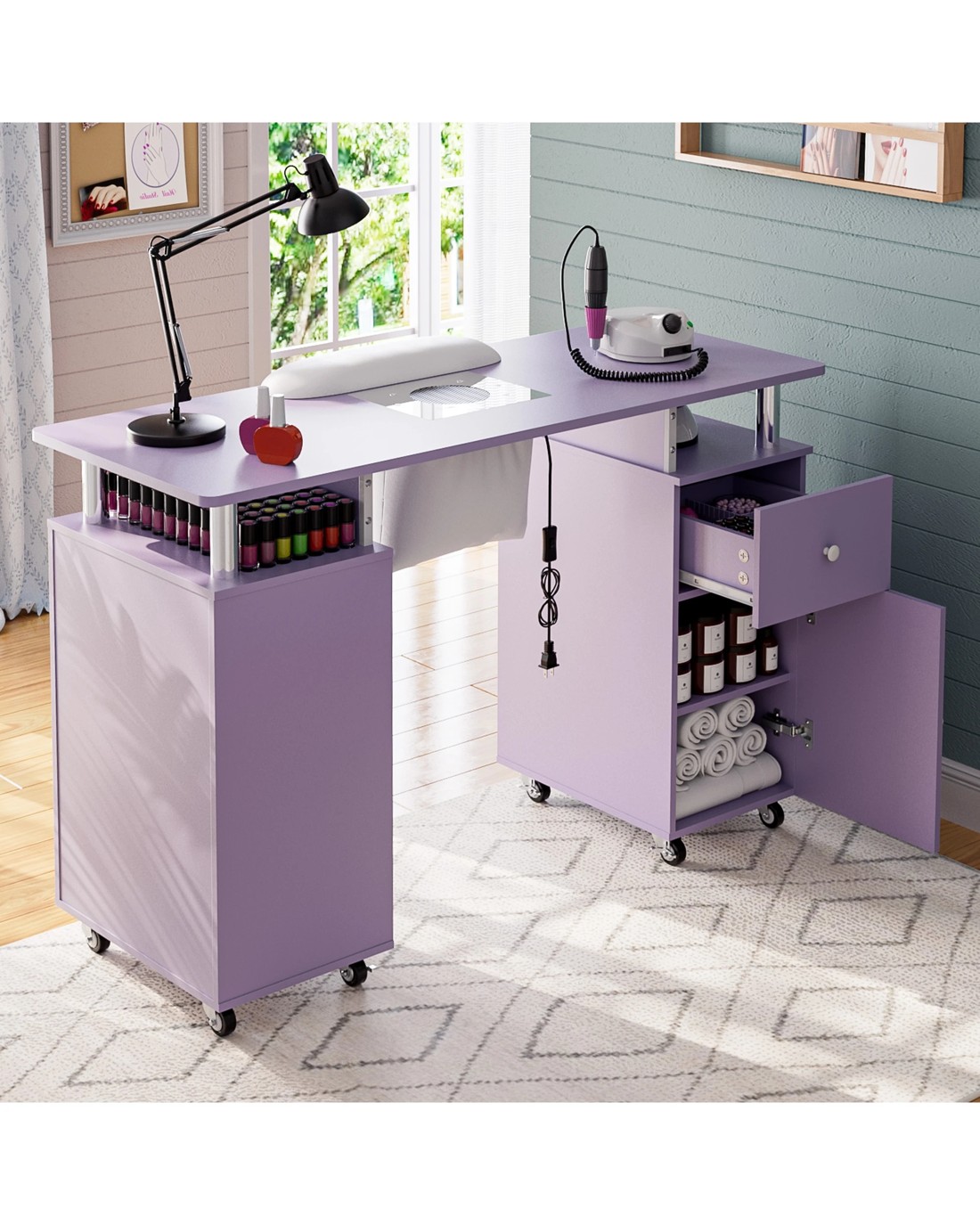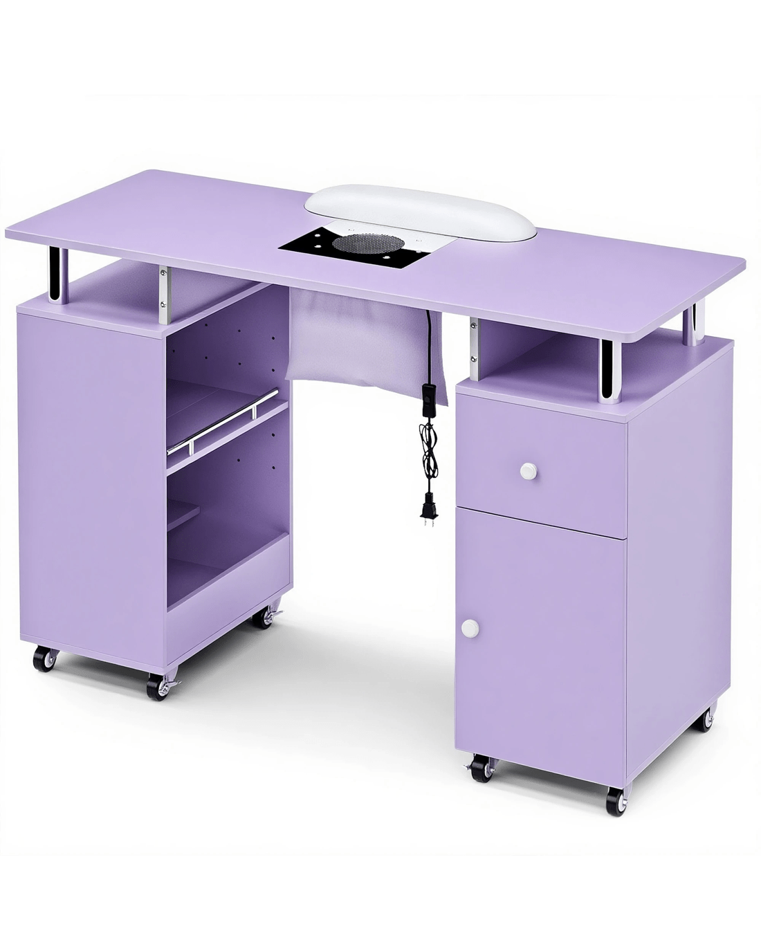 Sold by AdvwinAdvwin Manicure Table Vanity Desk for Nail Tech with Dust Collector Wrist Rest Lockable Wheels - Purple