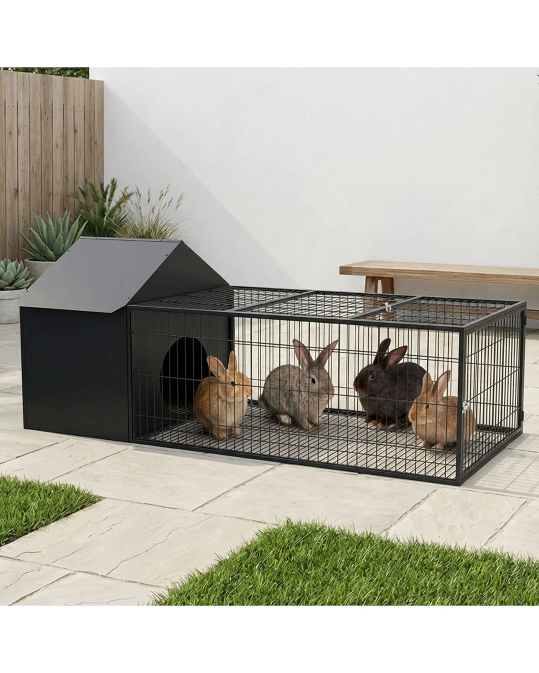 All-in-One Comfortable Home: Combines a cozy, enclosed shelter for rest with a roomy metal run for exercise, all in a single, pet-friendly unit.