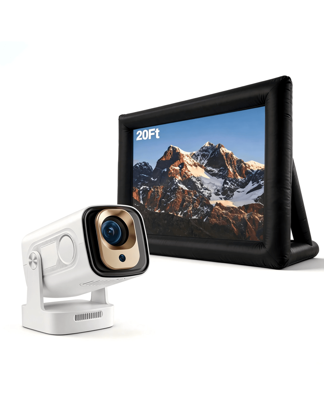 Advwin Mini Projector and 20ft Inflatable Movie Screen Combo Outdoor Projector and Screen with Blower - Black
