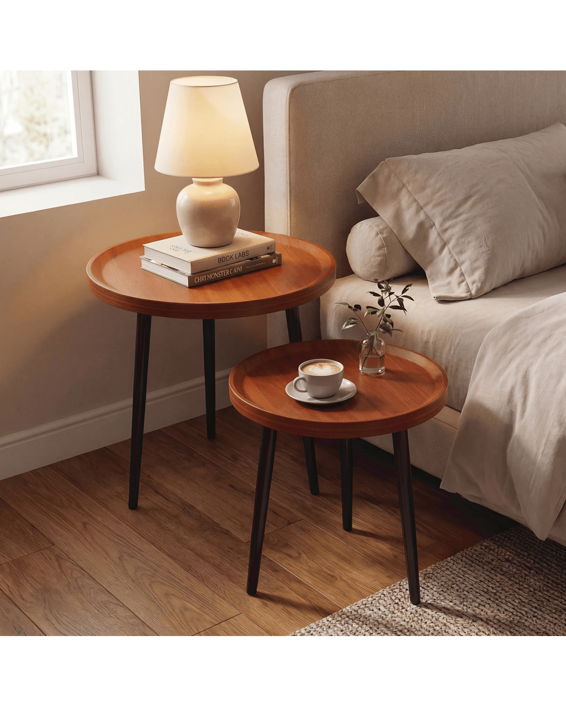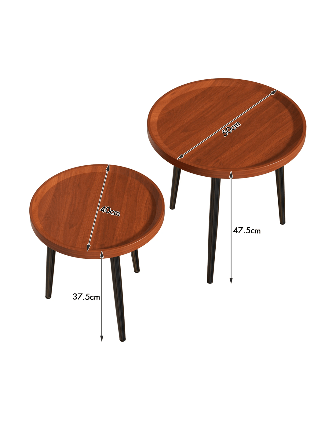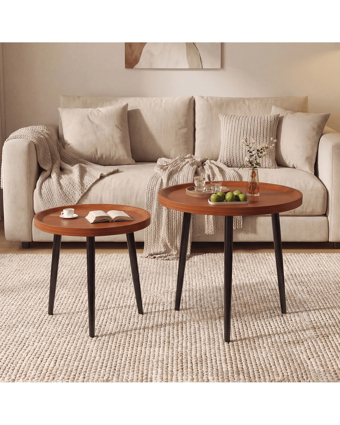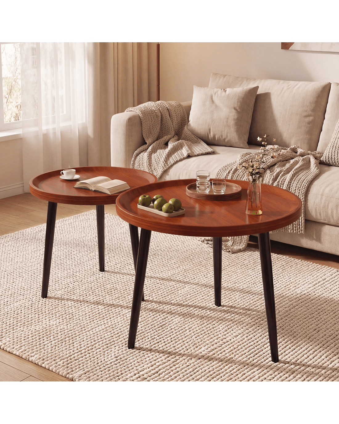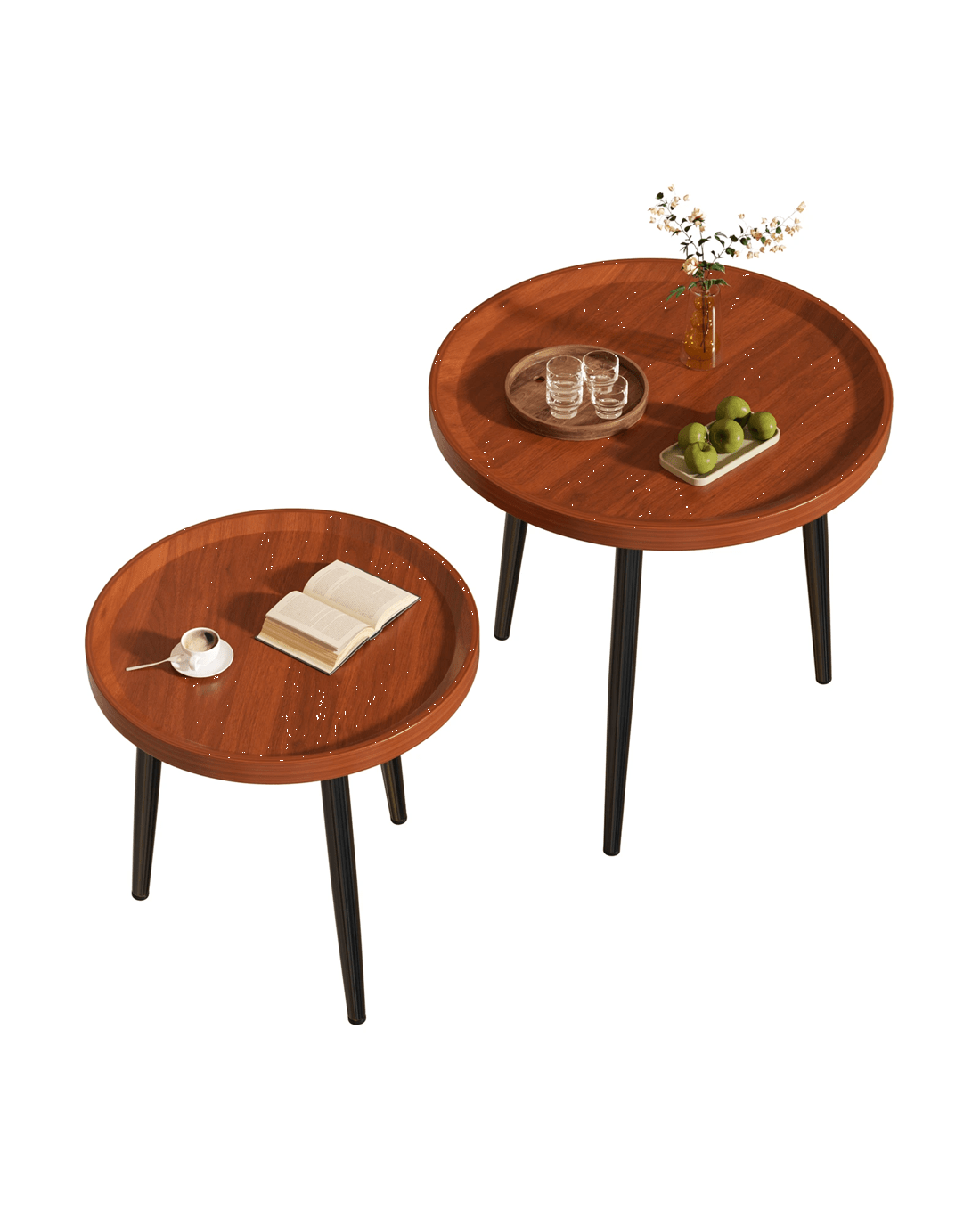 Advwin Nesting Coffee Tables Set of 2 Convertible w/ Raised Edge - Walnut