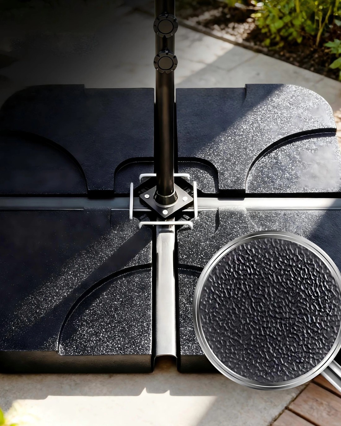 Secure your cantilever umbrella with our heavy-duty fillable base, designed for maximum stability. Easily add water or sand for steadfast support, keeping your umbrella firmly anchored even on windy days.