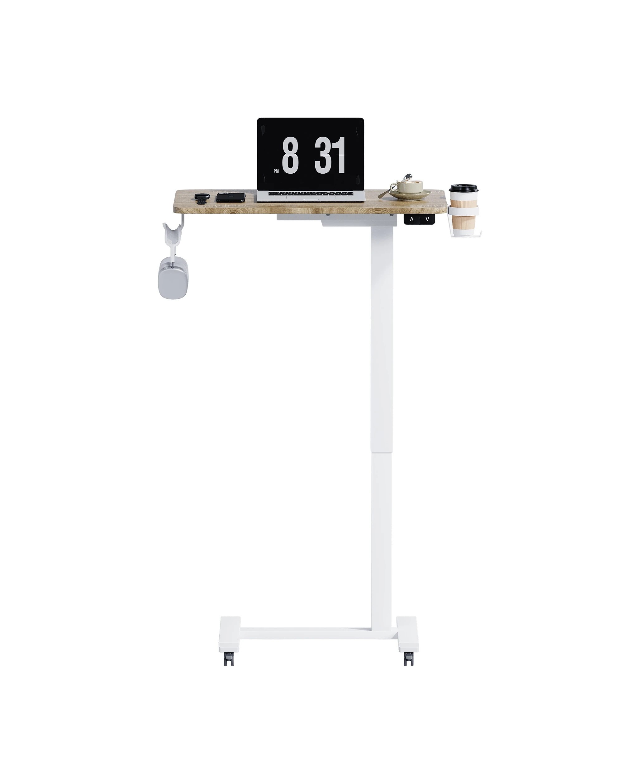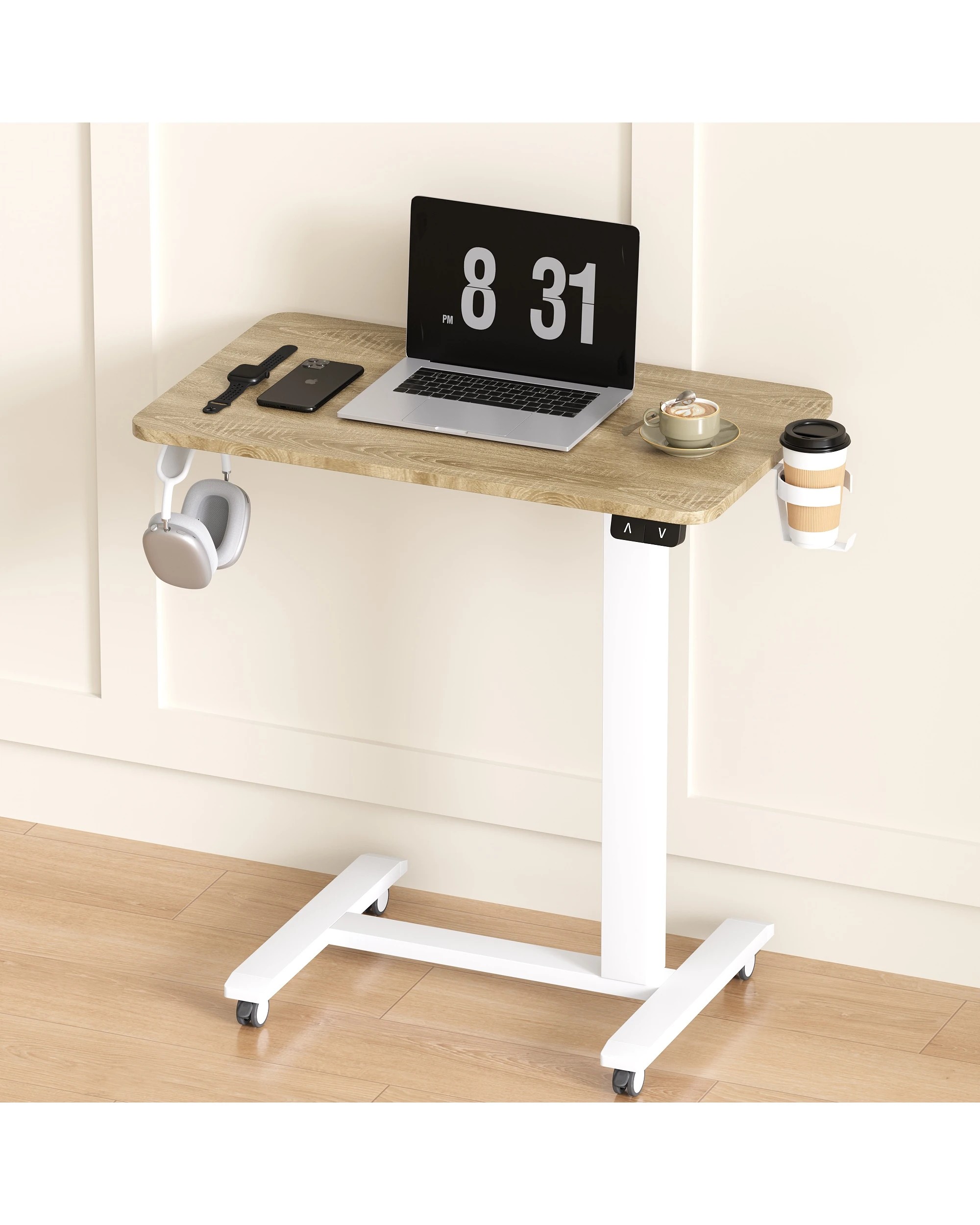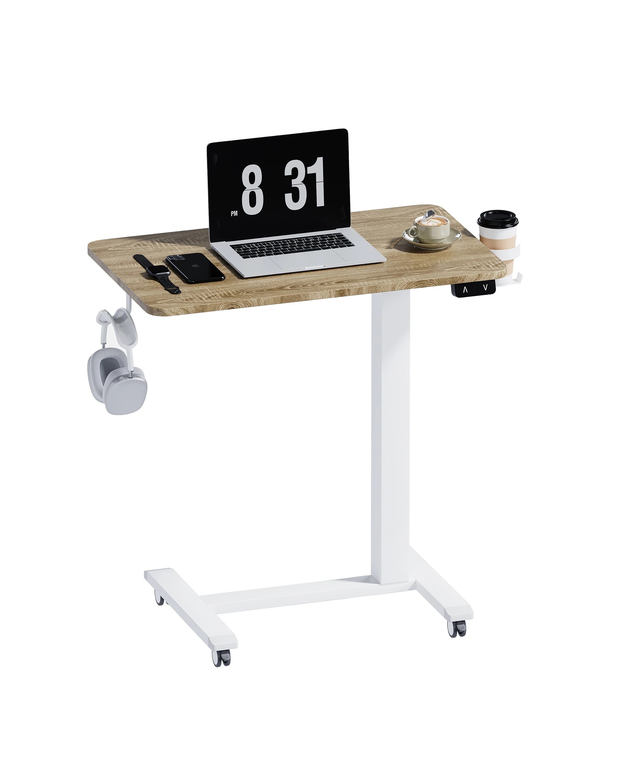 Advwin Portable Electric Standing Desk Height Adjustable Small Mobile Table Oak - Natural