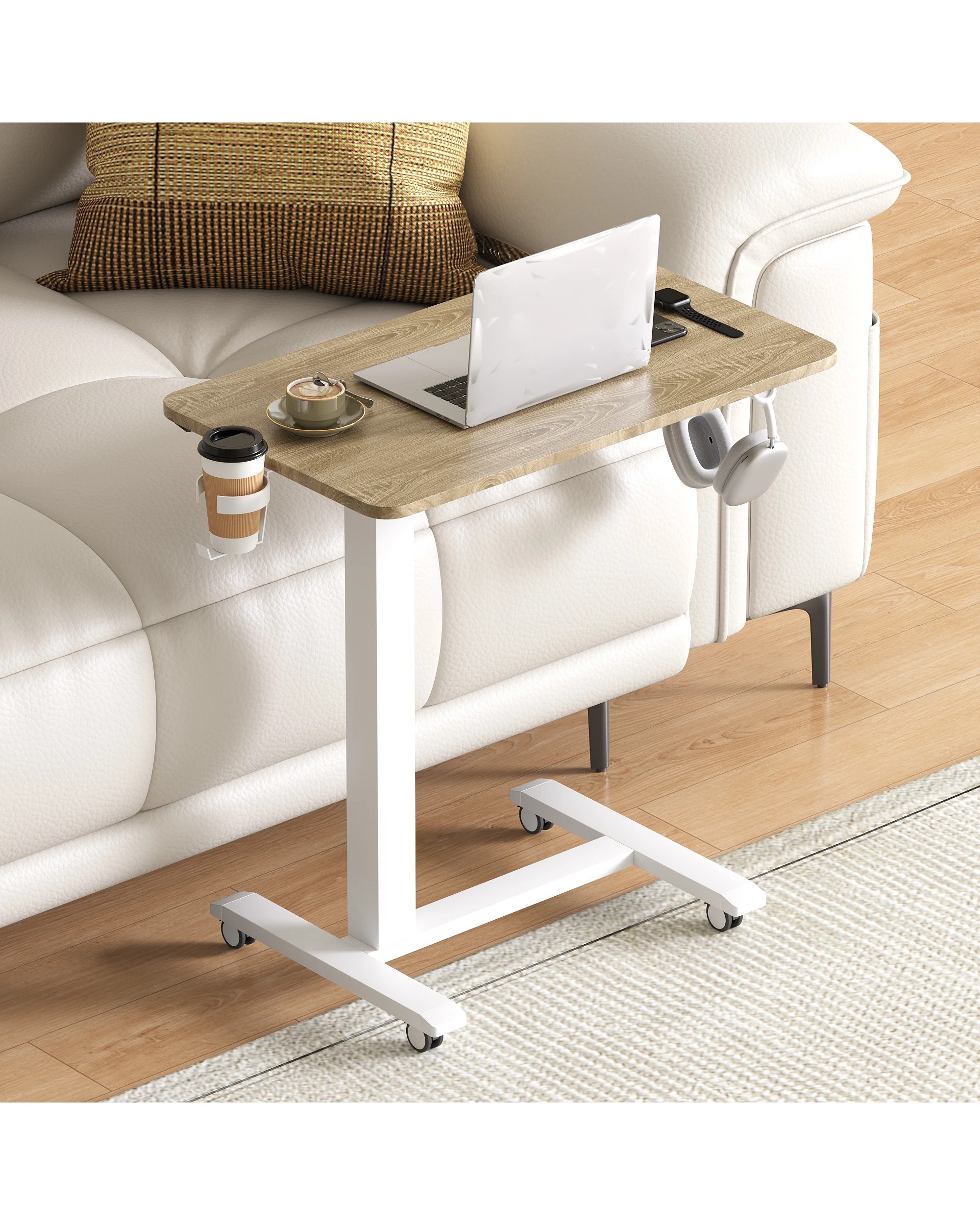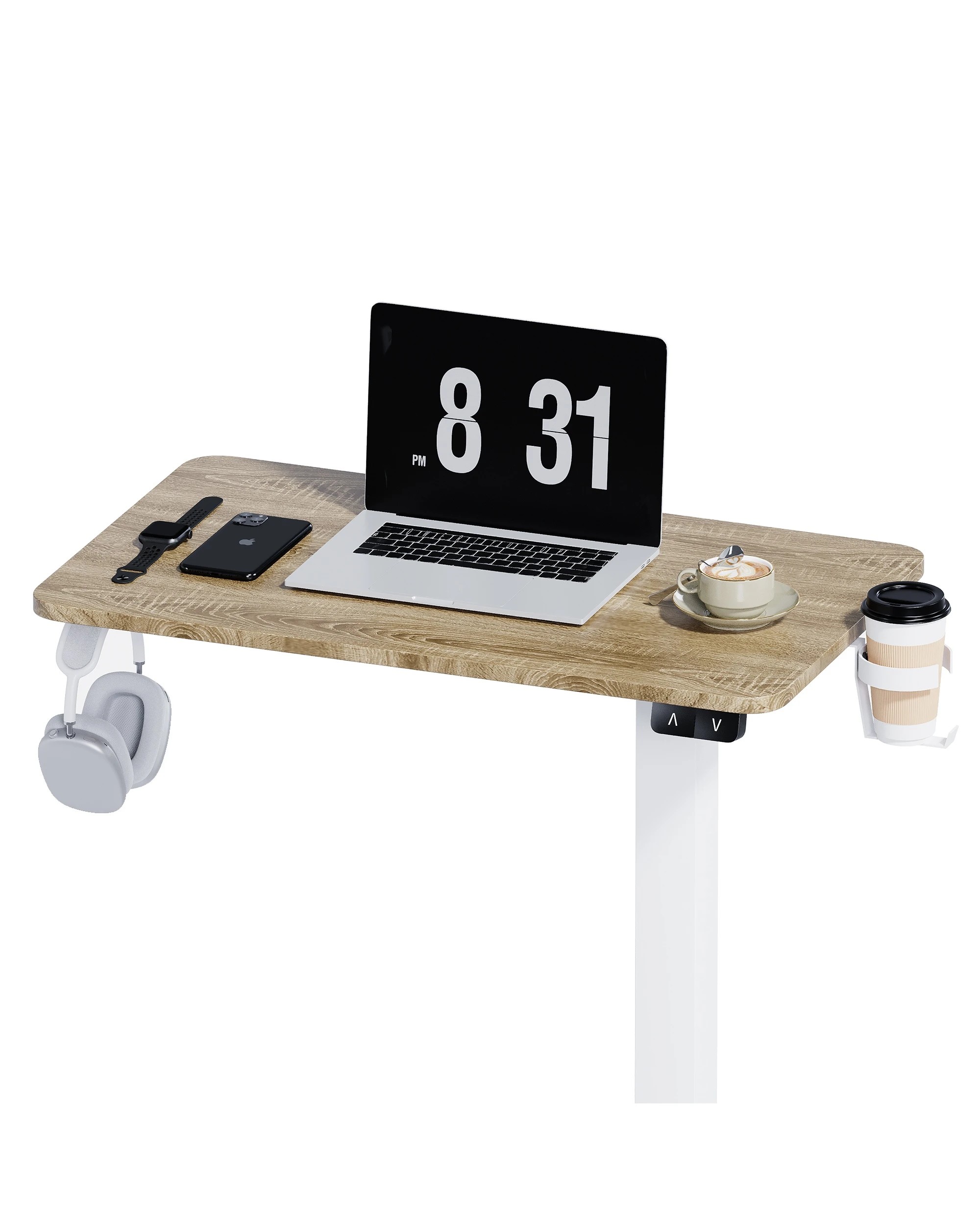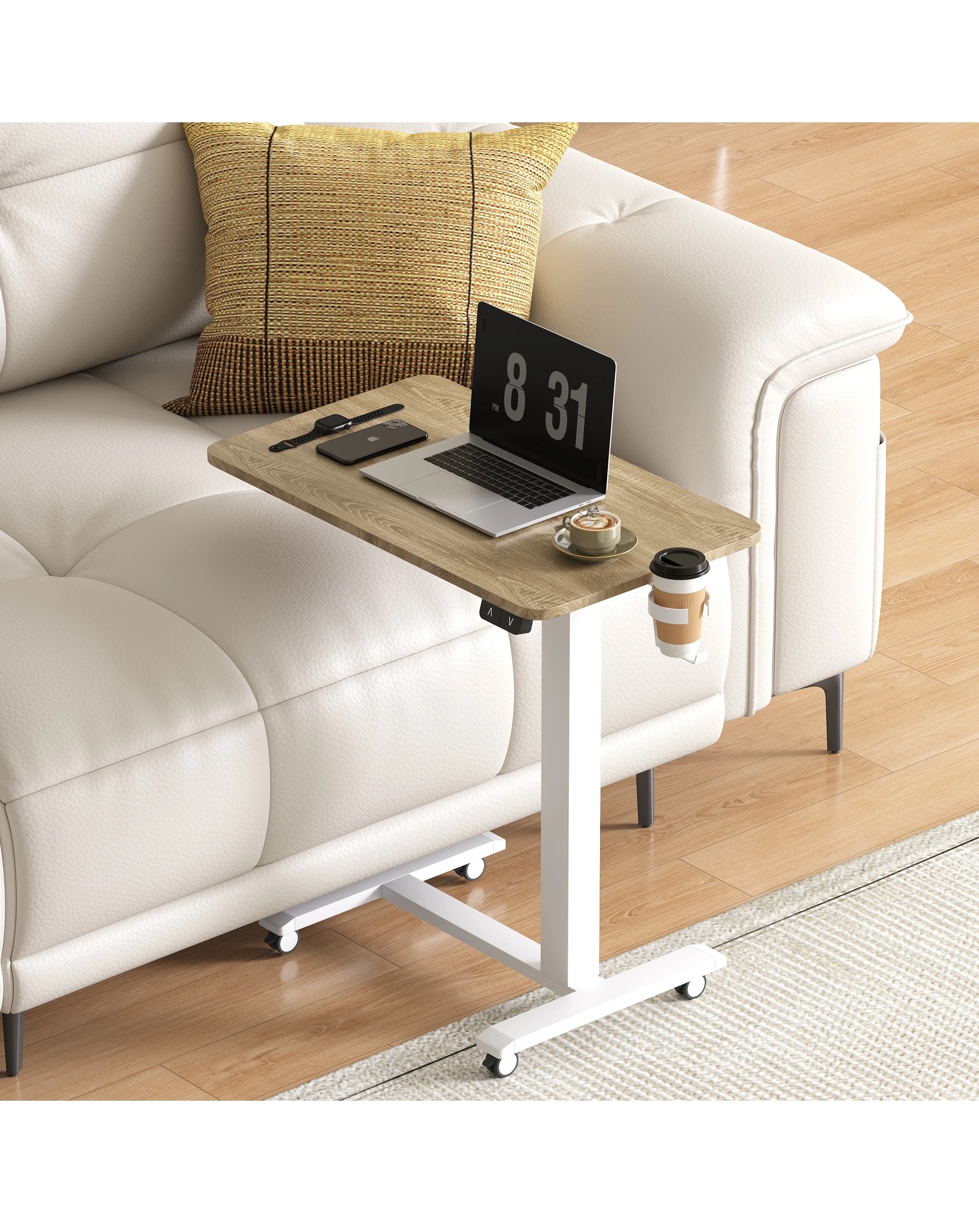 Advwin Portable Electric Standing Desk Height Adjustable Small Mobile Table Oak - Natural