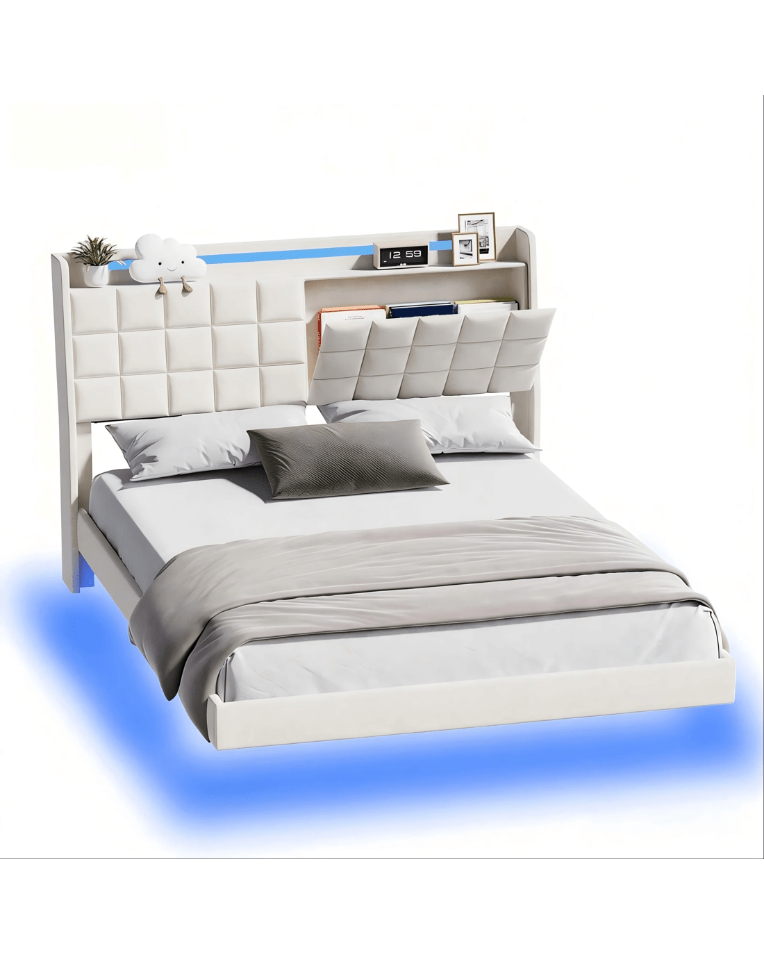 Sold by AdvwinAdvwin Queen Floating Bed Frame with LED Lights and Storage Headboard - Beige