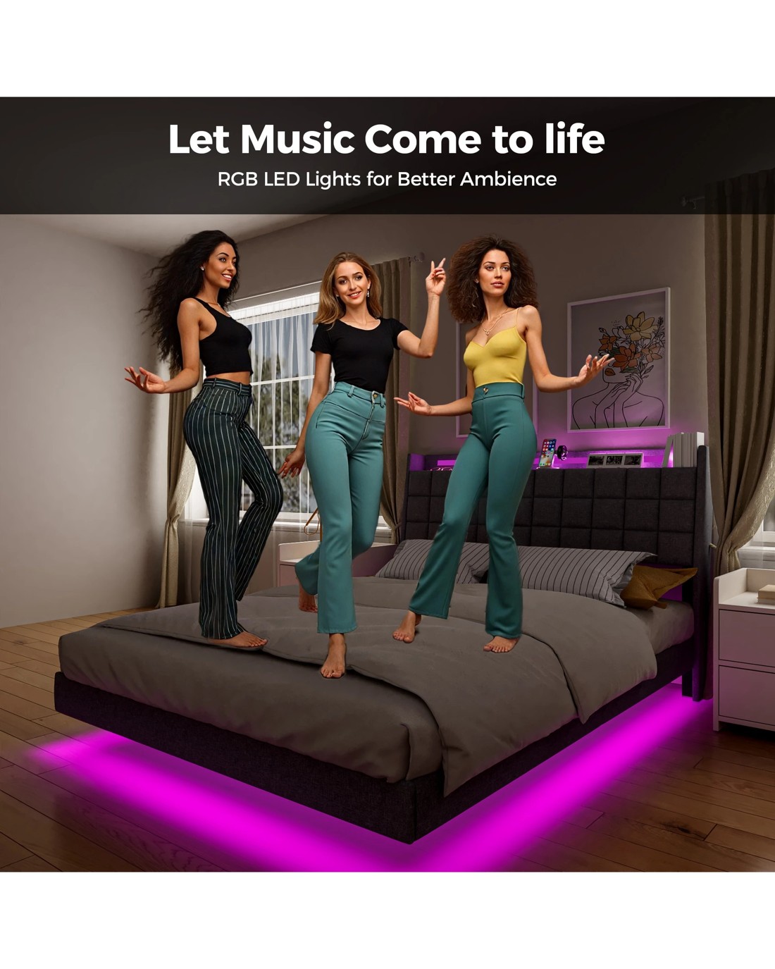 RGB LED light Strip Around the Bed Frame