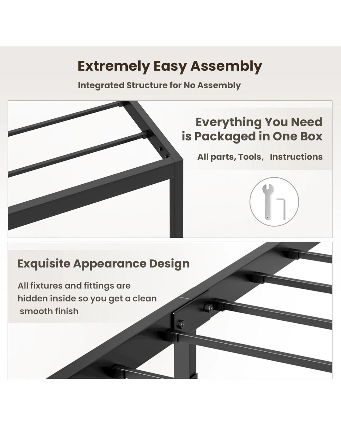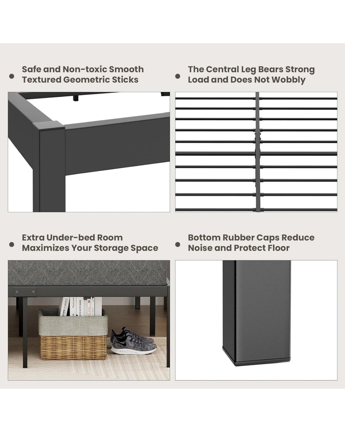 Sturdy and Durable:This Queen bed frame is made of 1mm thick heavy-duty steel pipe, reinforced center beam and reasonably configured supporting legs, which prolong the service life of the mattress.