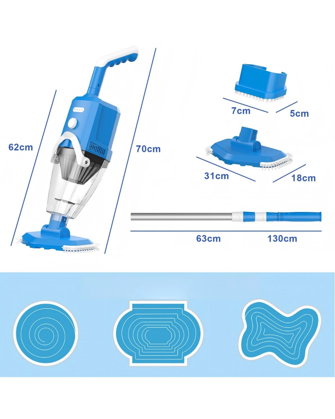 - Telescopic Pole: Our Cordless pool vacuum equipped with a short handle is perfect for cleaning pool edges and smaller areas. The telescopic pole can extend up to 3.6 feet, making it suitable for larger pools.