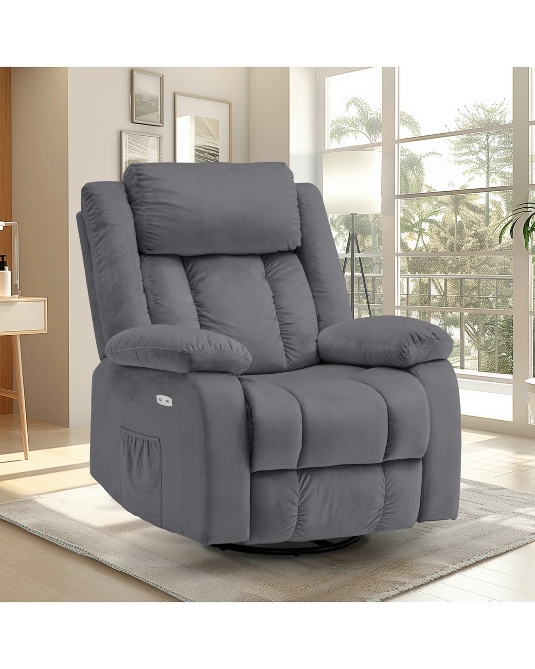 Advwin Recliner Chair Electric Heat Massage Chair Lounge Armchair Rotatable Velvet Grey
