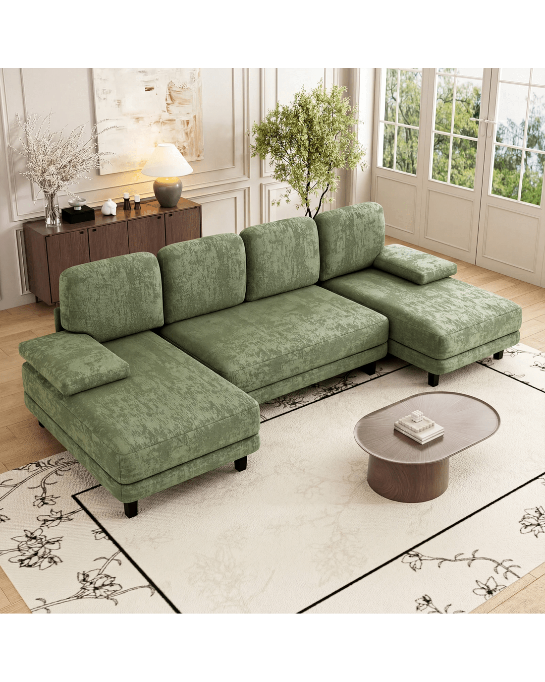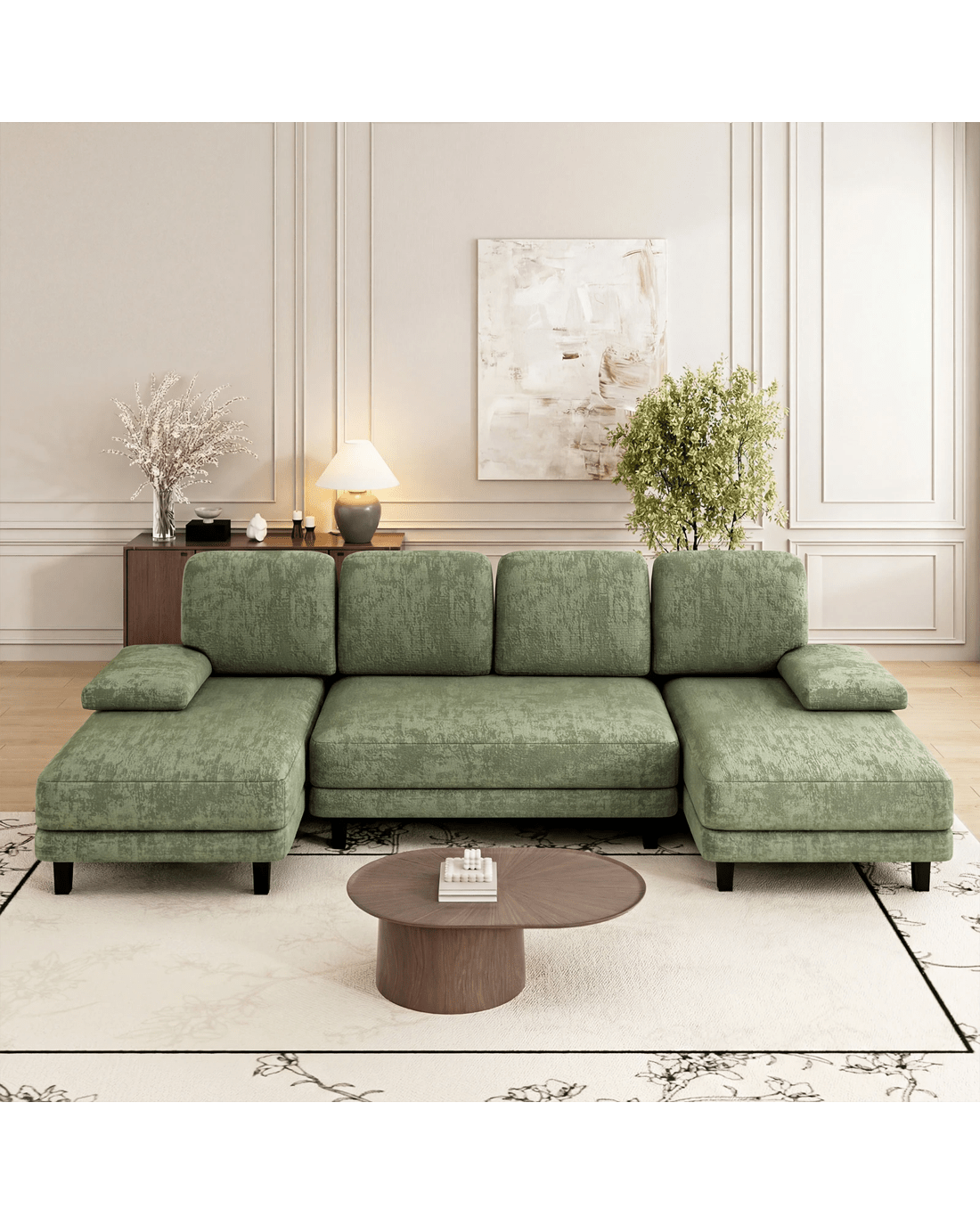 Designed to accommodate four people, this spacious sofa offers ample seating space for you, your family, and guests. Its U-shaped modular design not only adds a contemporary flair to your home but also allows for flexibility in arranging your furniture.