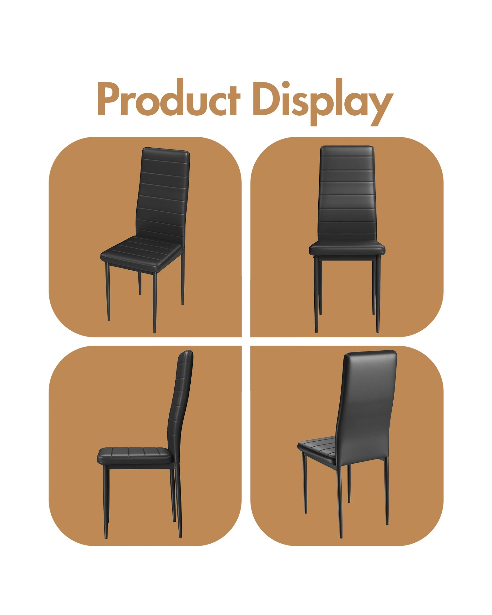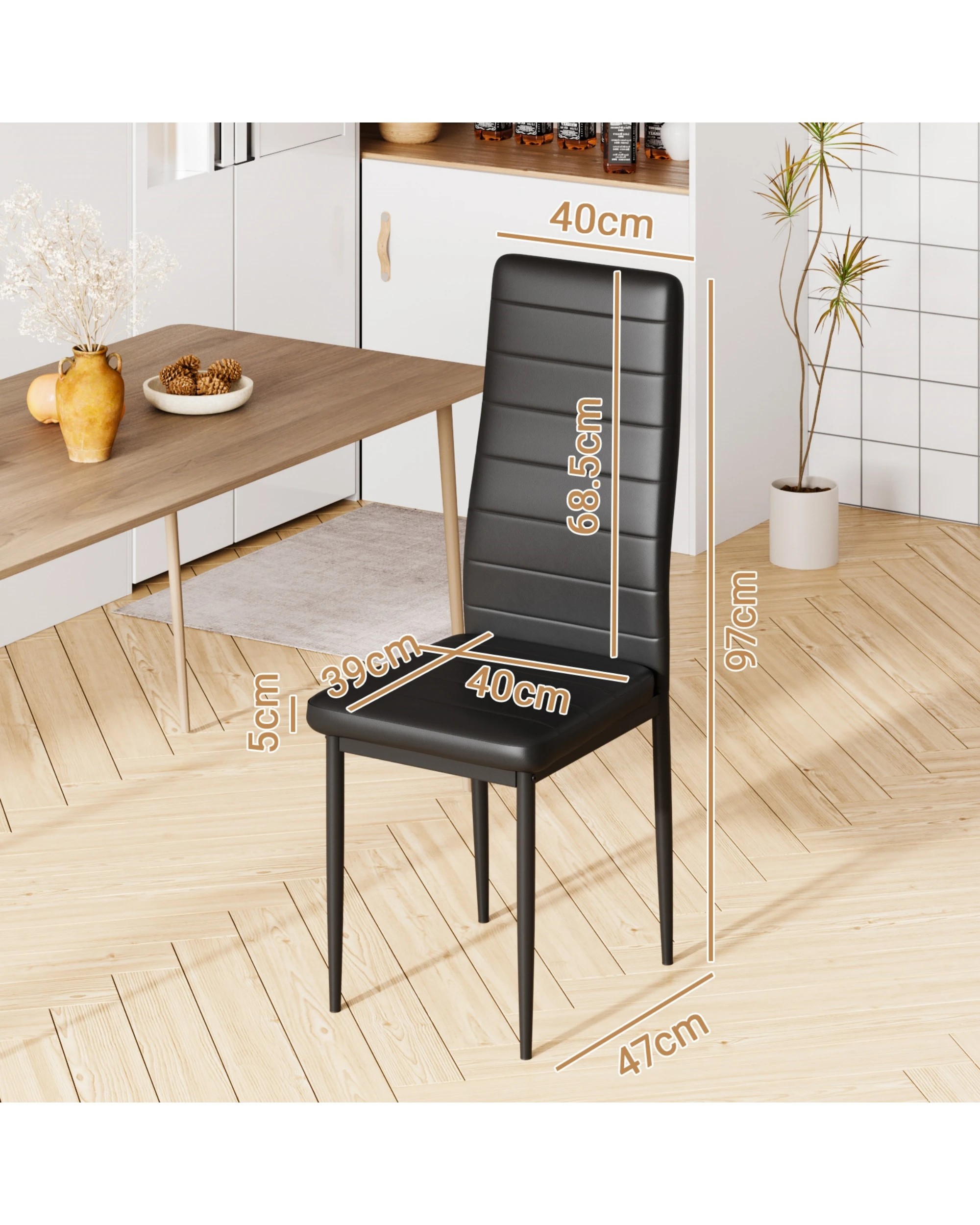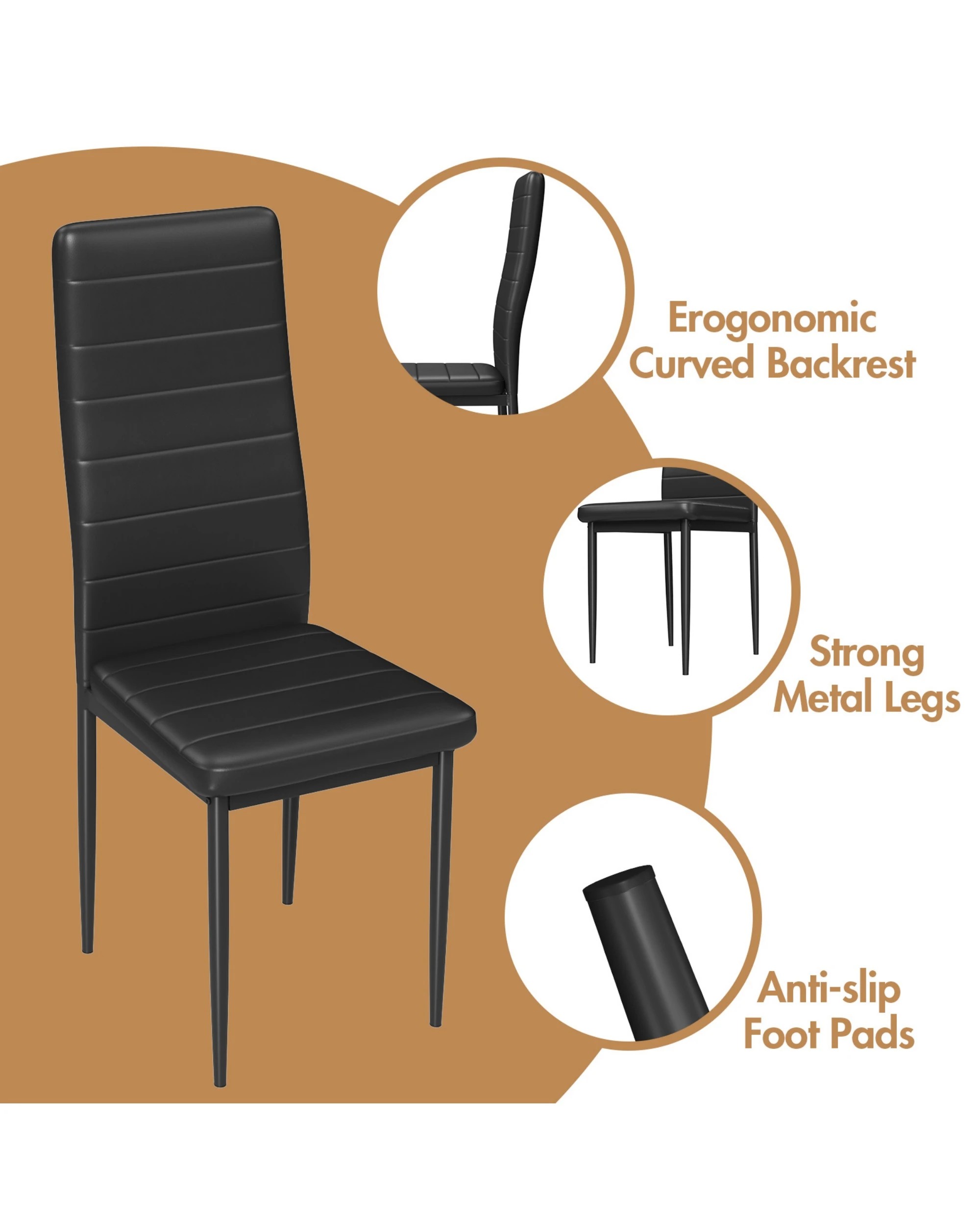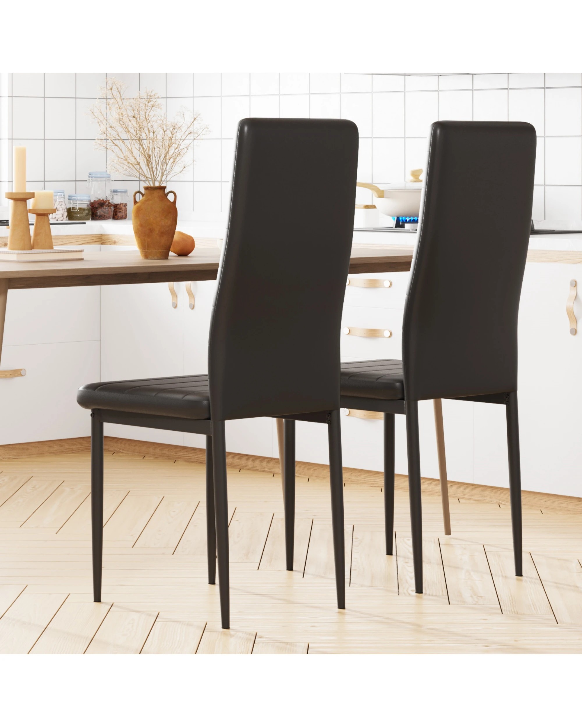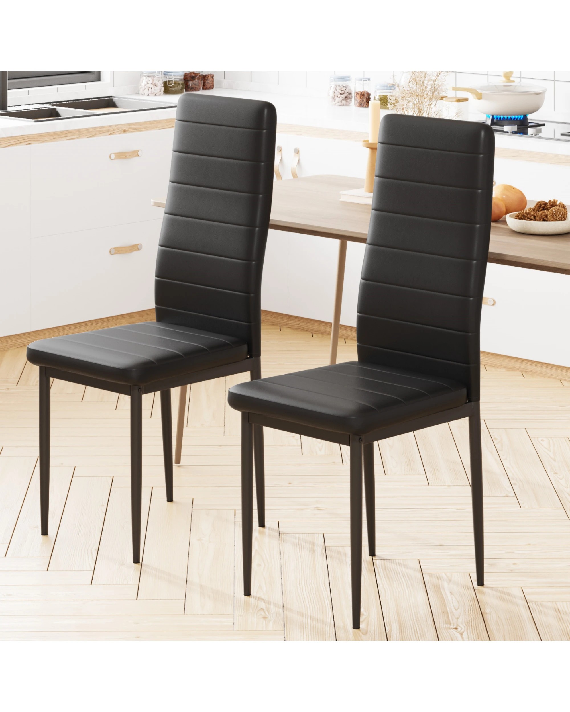 Advwin Set Of 2 Dining Chairs Padded Seat Leather Black