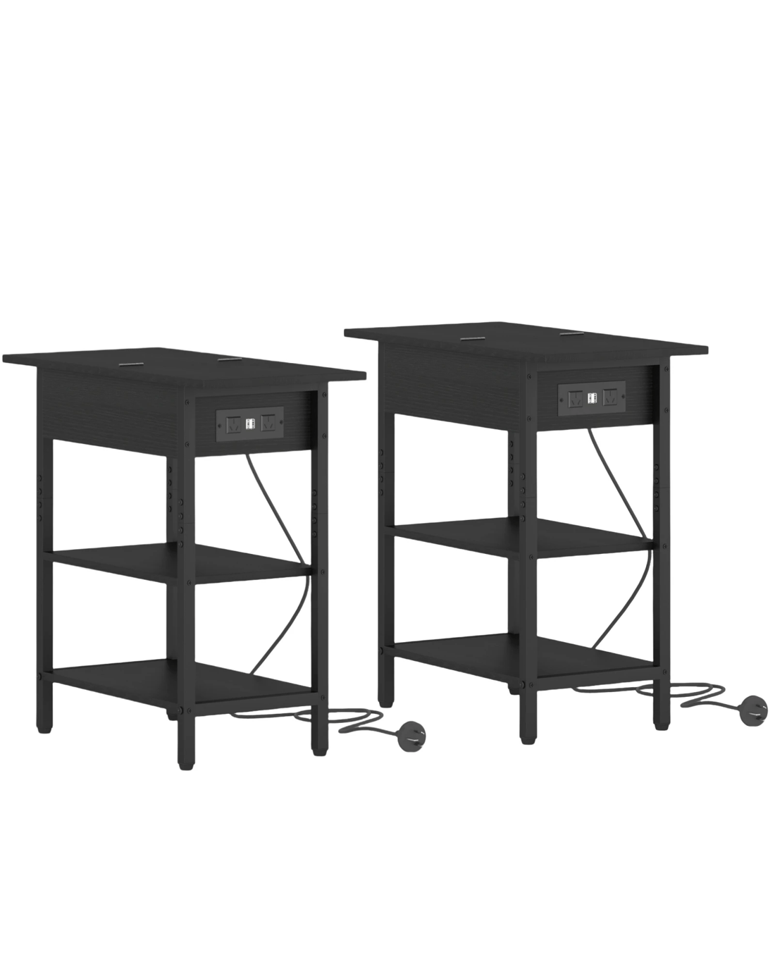 Sold by AdvwinAdvwin Set Of 2 Flip Top Side Table W/ Charging Station Black