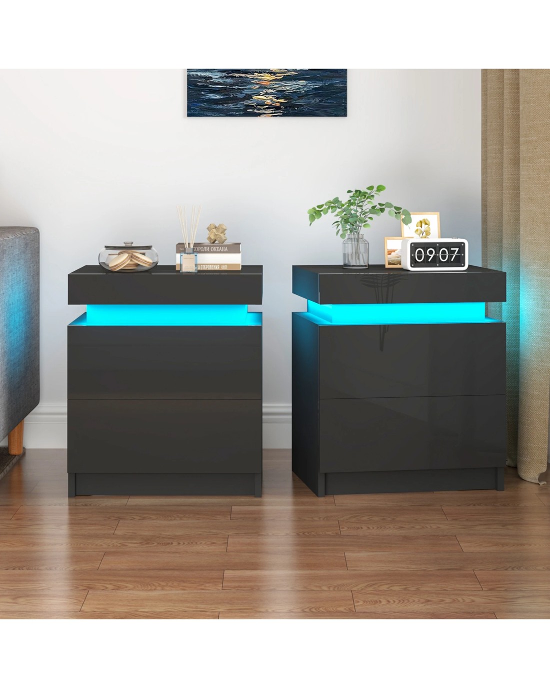 Gorgeous High-Gloss Design: The front of the bedside table has been treated with a high-gloss UV surface, which has a gorgeous decorative high-gloss finish and enhances the sense of space with its reflective properties. and easy to care for and maintain.