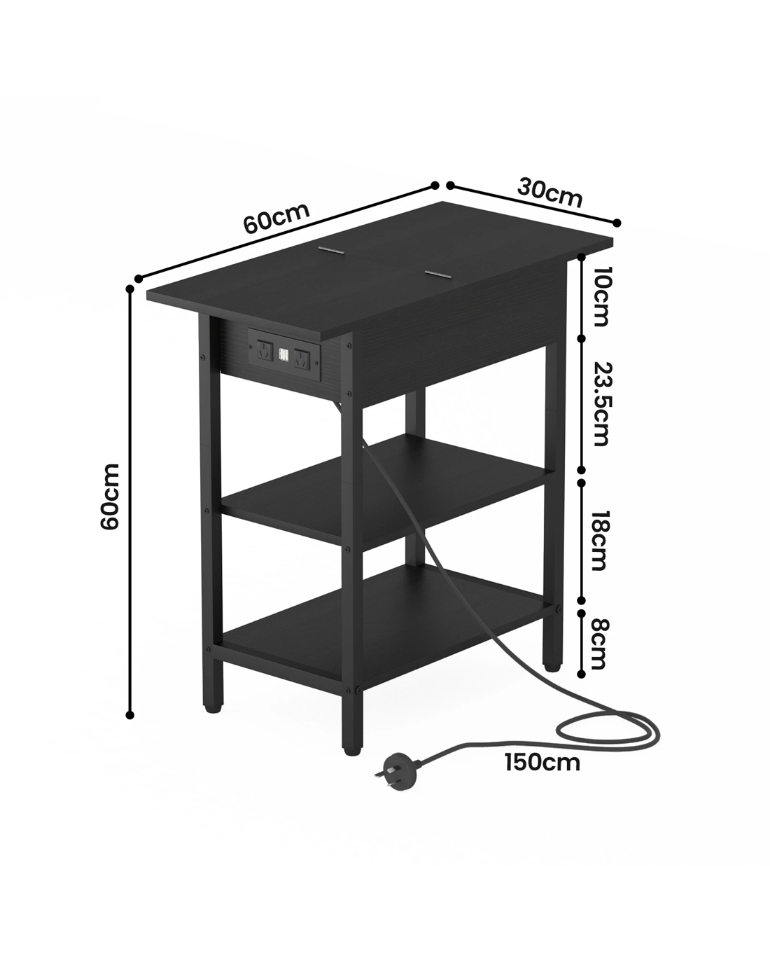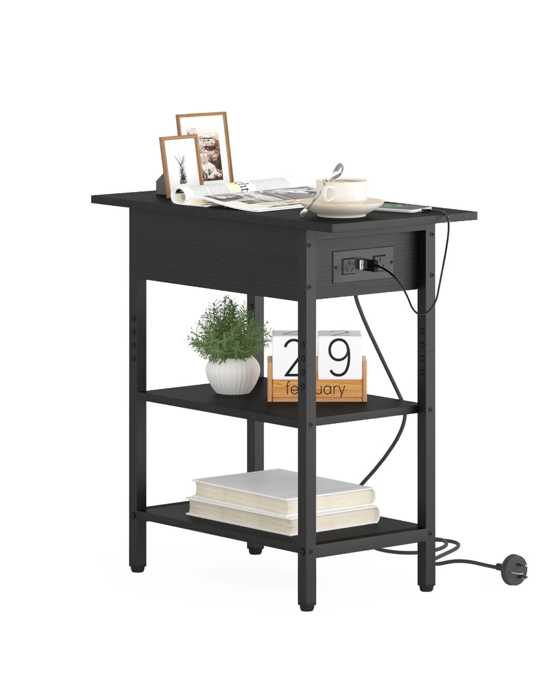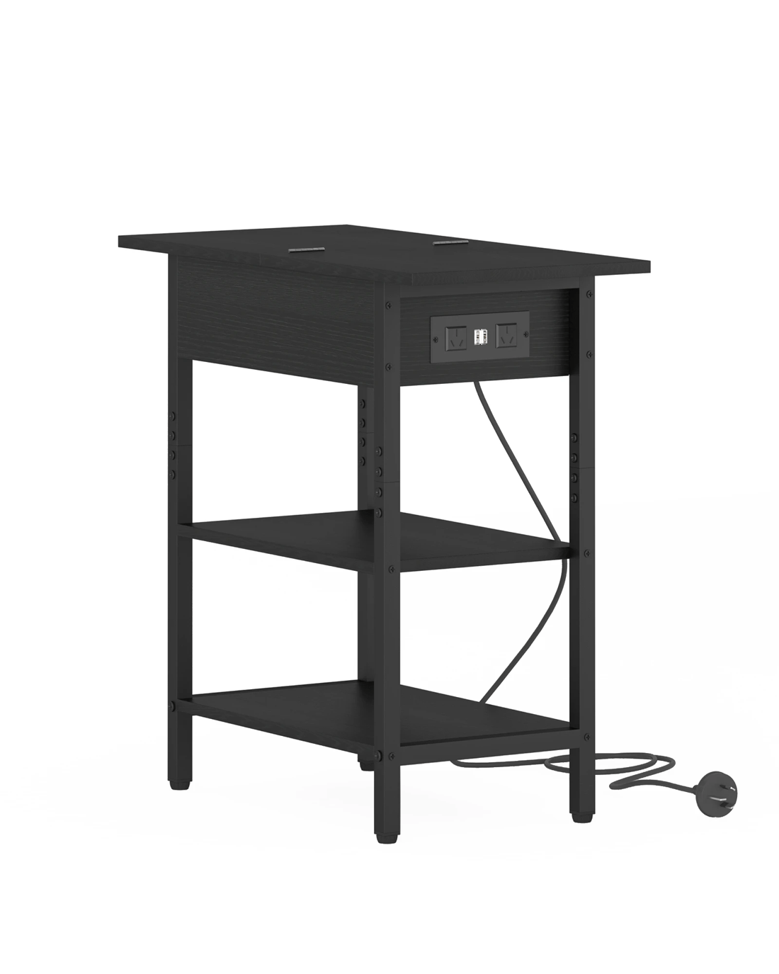 Advwin Flip Top Side Table W/ Charging Station Black
