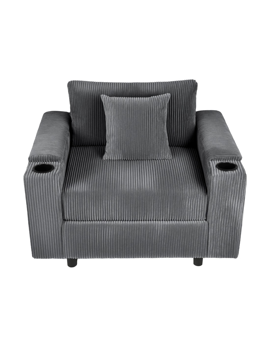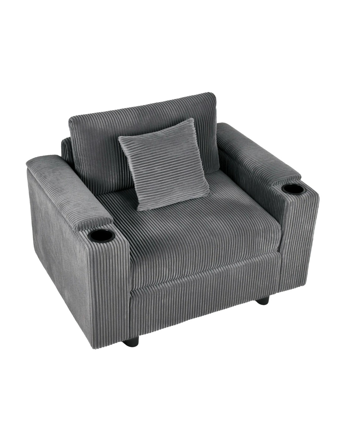 Advwin Single Sofa w/ Storage Armrests Corduroy Armchair w/ Cup Holder Modern Lounge Sofa Couch with Cushion