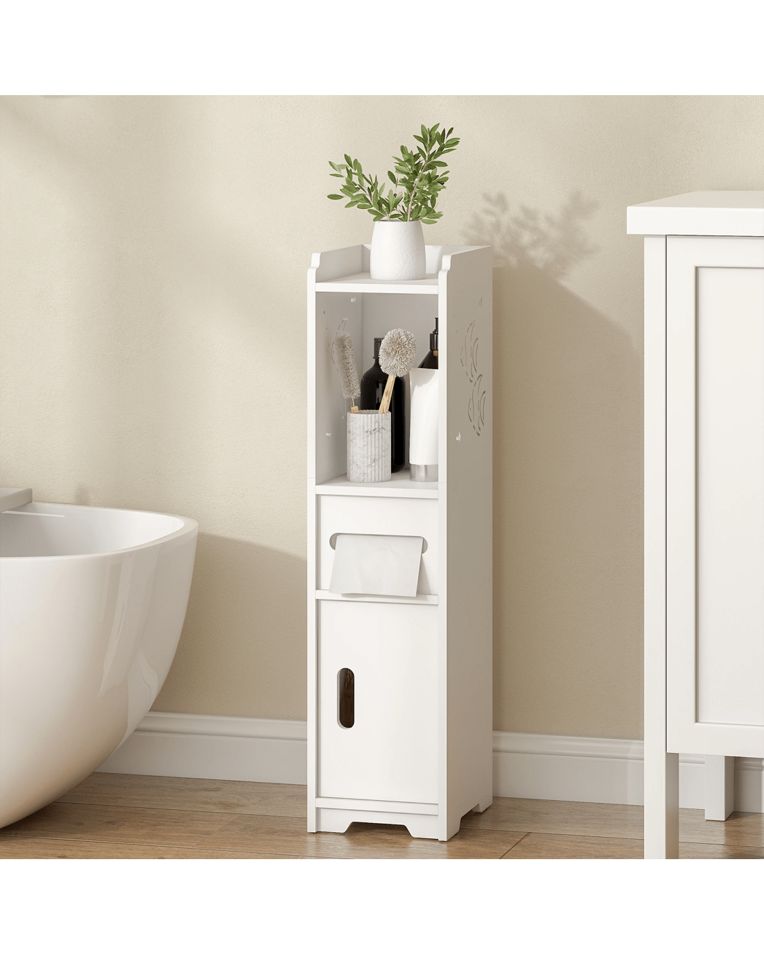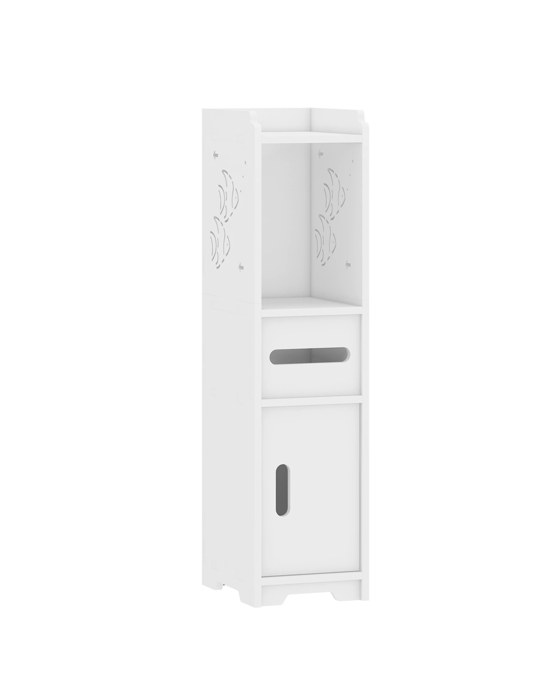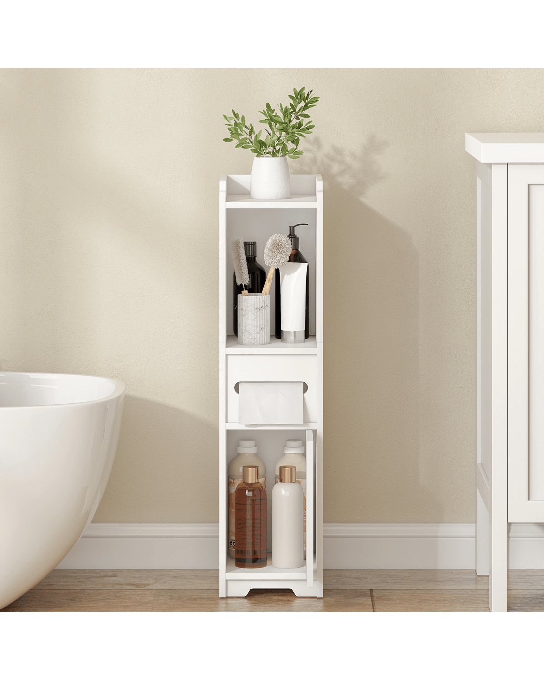Sold by AdvwinAdvwin Slim Bathroom Storage Cabinet PVC Narrow Storage Cupboard with Doors and Drawer Floor Cabinet with Open Shelves