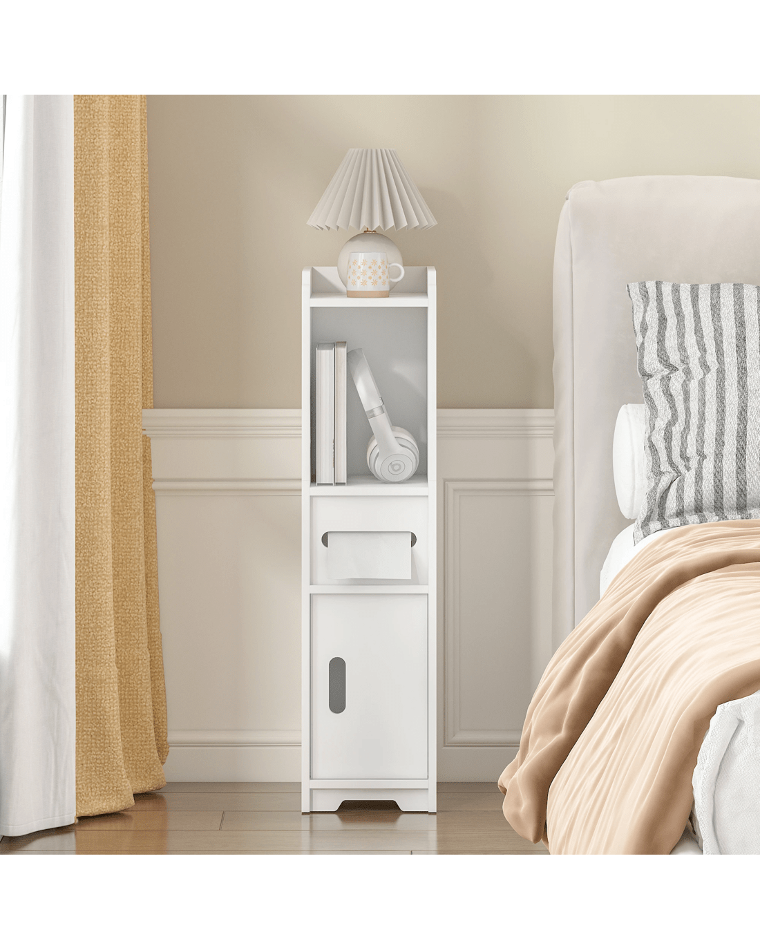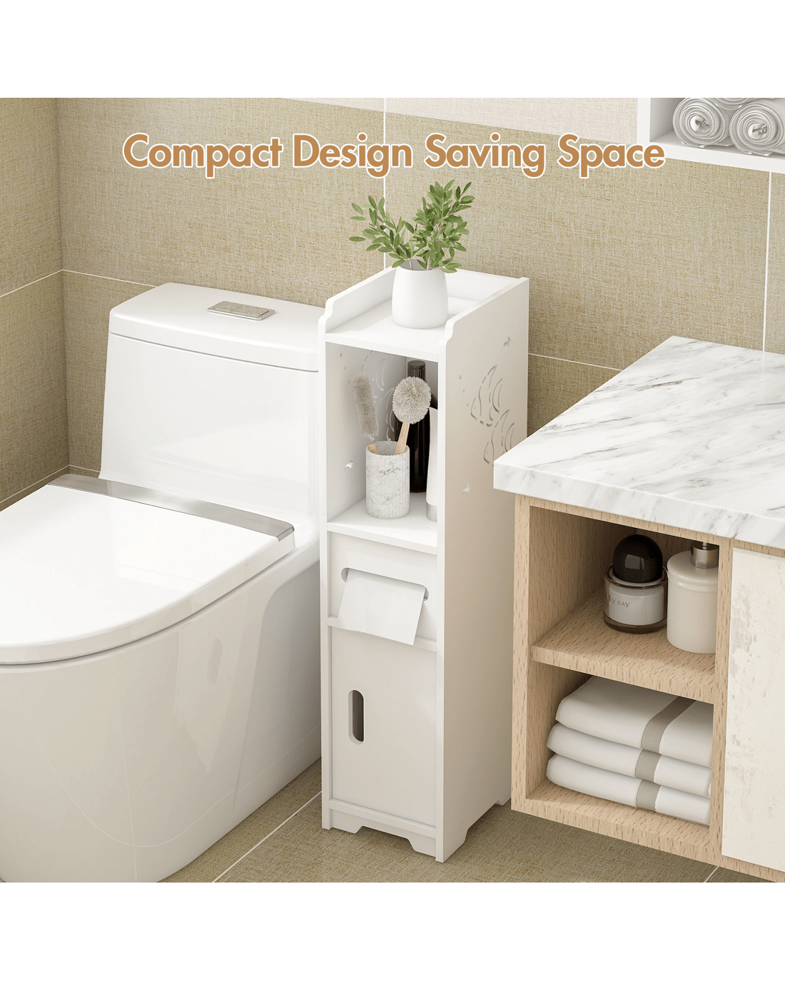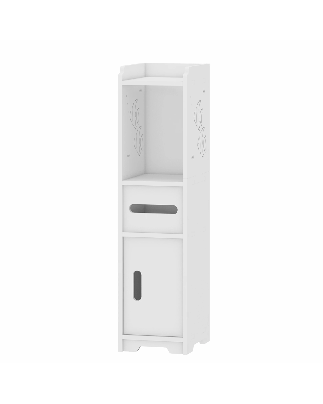 Sold by AdvwinAdvwin Slim Bathroom Storage Cabinet PVC Narrow Storage Cupboard with Doors and Drawer Floor Cabinet with Open Shelves
