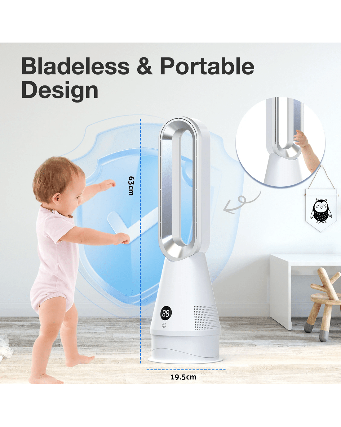 The perfect combination of style, functionality, and safety. Designed with cutting-edge technology, this fan provides a cool breeze without the worry of exposed blades. Say goodbye to traditional fans and step into a new era of comfort with ADVWIN.