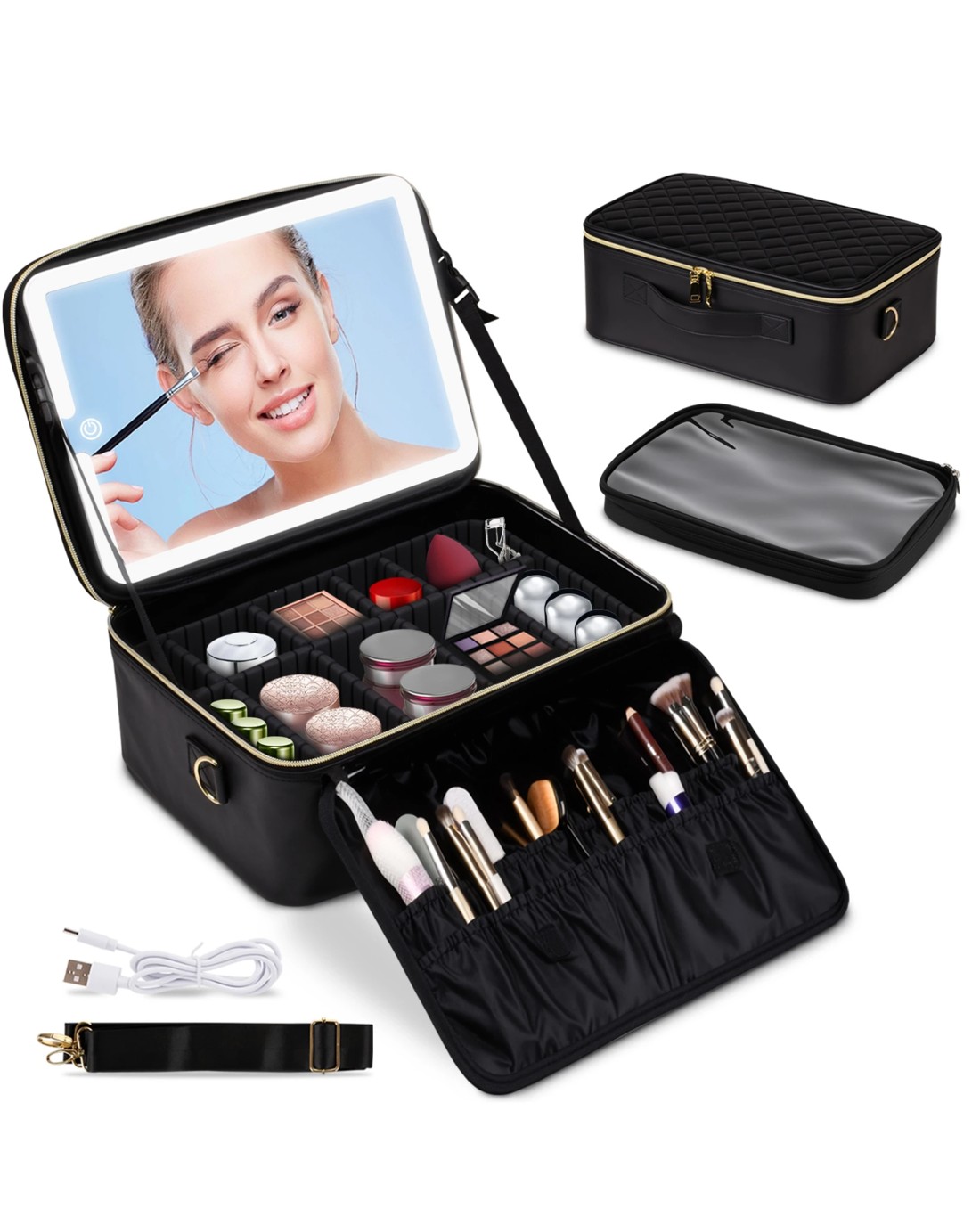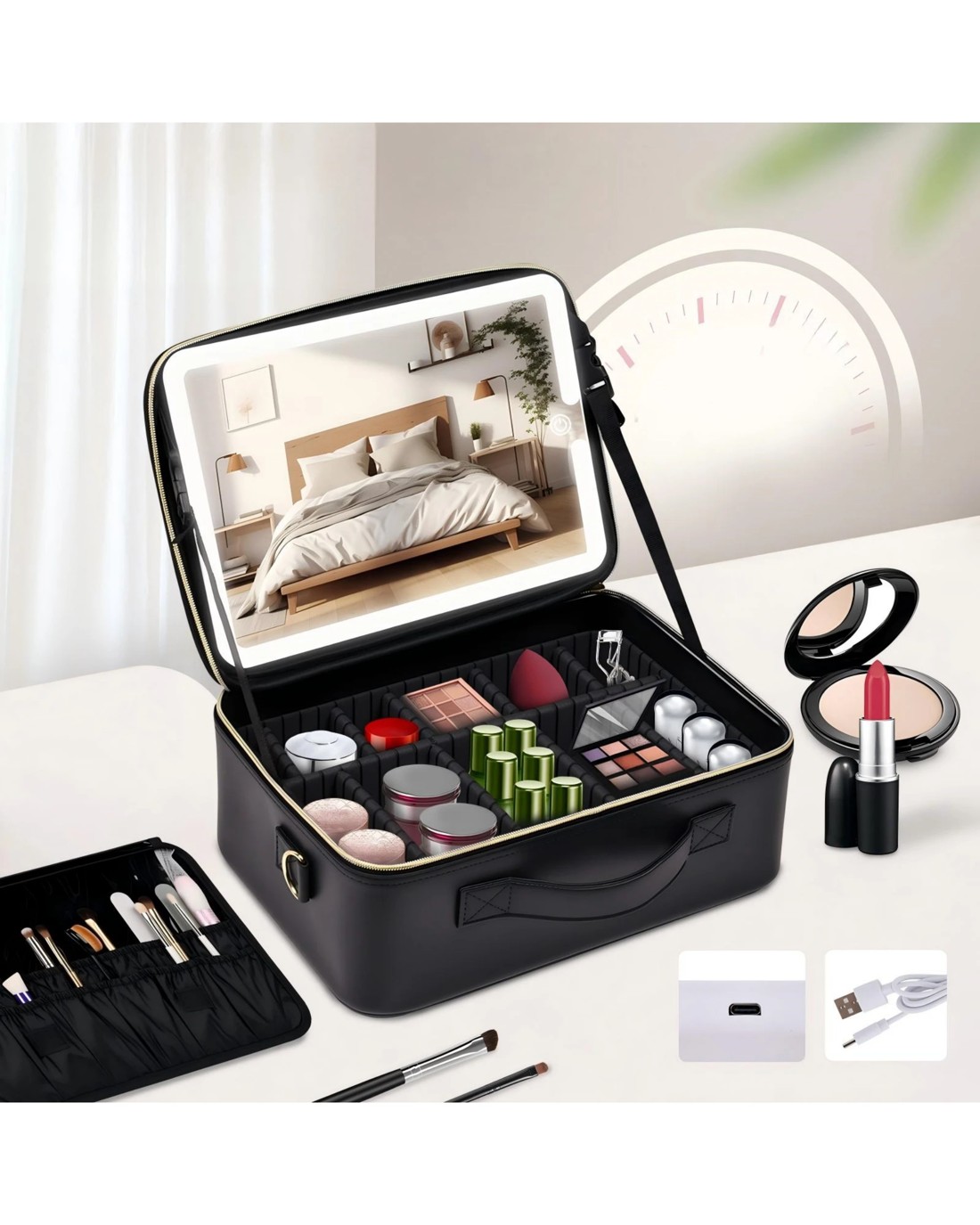 Elevate your beauty routine with this 15-inch portable LED makeup case - engineered for professional artists and beauty enthusiasts alike. The star feature is its advanced LED vanity mirror offering 3 true-tone lighting modes (cool/neutral/warm) with seamless 0%-100% dimming control, ensuring color-accurate application whether you are in a dim bedroom or backstage at a photoshoot.