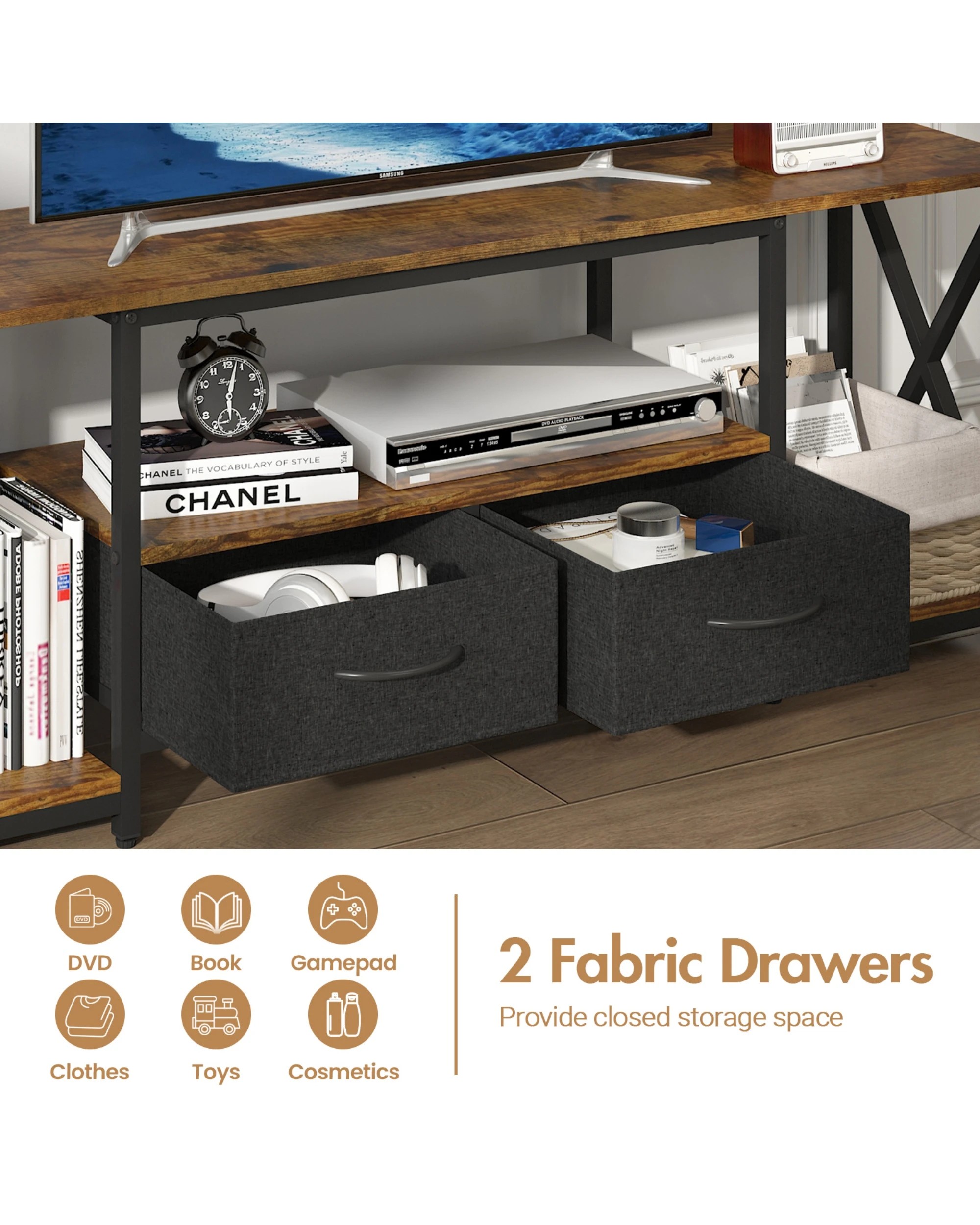 Advwin Tv Cabinet 140cm Entertainment Unit Stand W/ Shelf & Drawers Media Console Walnut