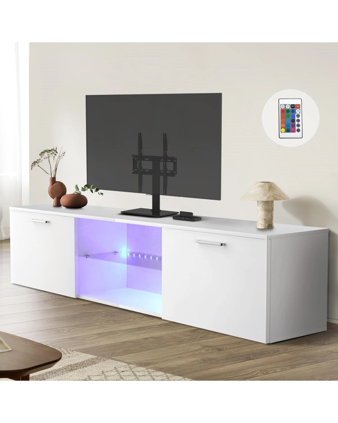 addition to your modern living room with its contemporary and linear design. And it offers ample storage space with two glass open shelves and two large cabinets for all your entertainment essentials.
